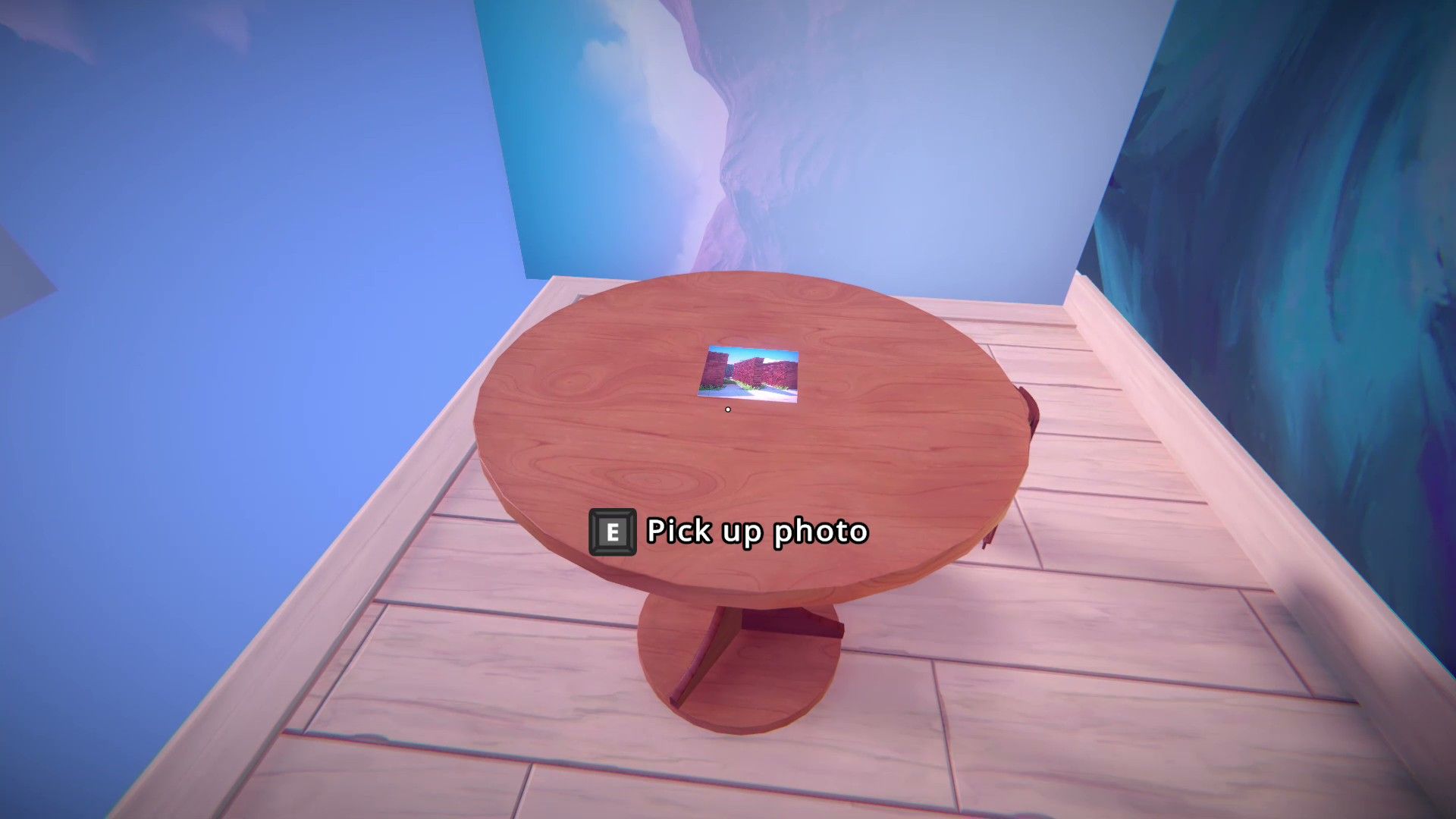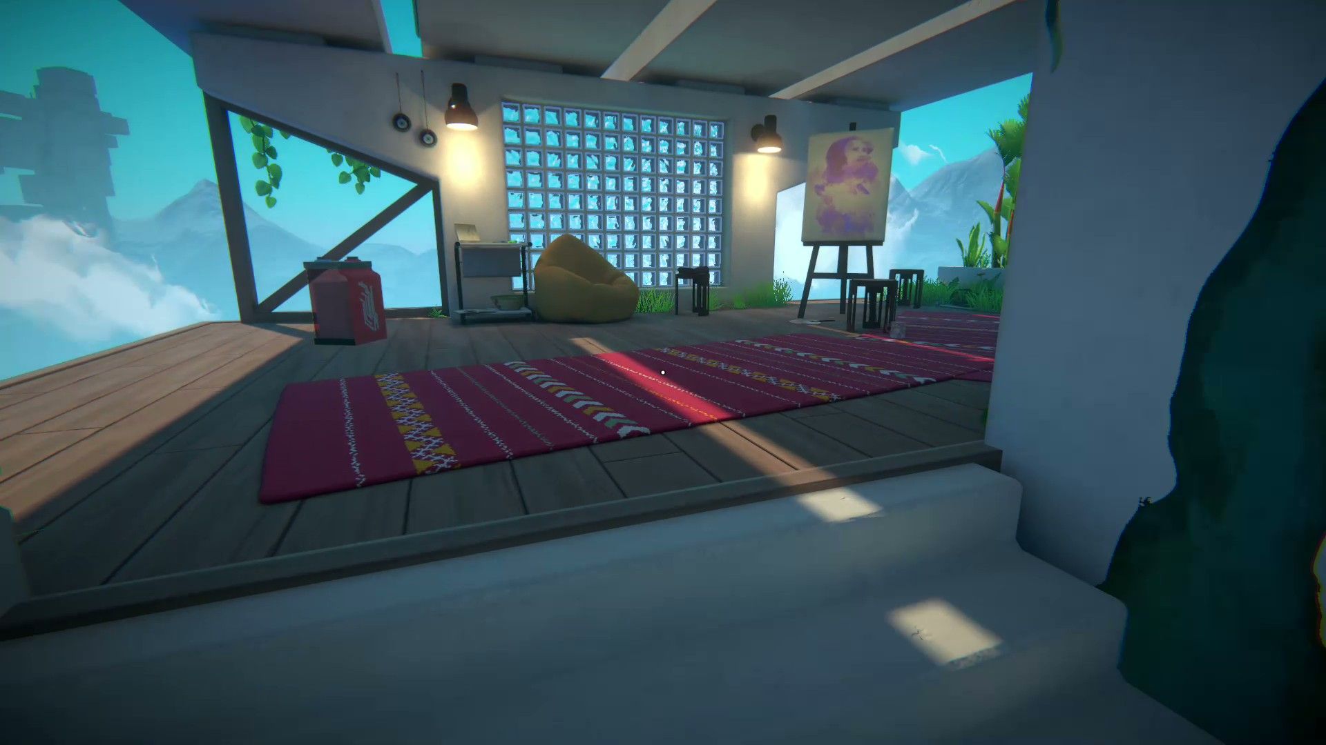Players need to walk down a hallway to find a painting on an easel. Once they’ve placed it, they continue searching for the next artwork, which is located on an easel at the top of the stairs.