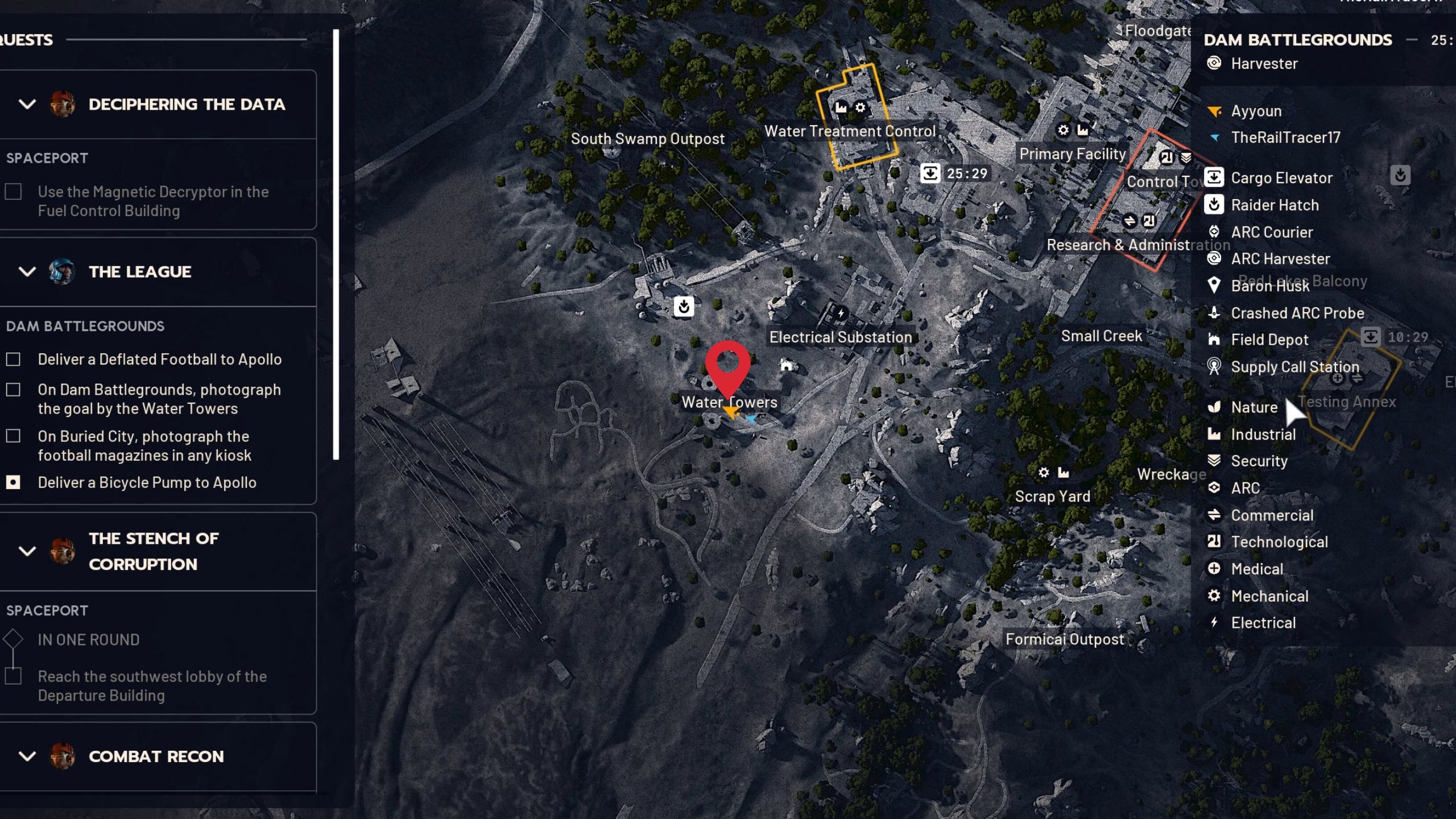 The first step in The League quest for ARC Raiders asks players to take a picture of an old goal post. You’ll find it near the Water Towers area on the Dam Battleground map. Water Towers is in the southwest corner, and you might need to zoom in on the map to spot its marker.