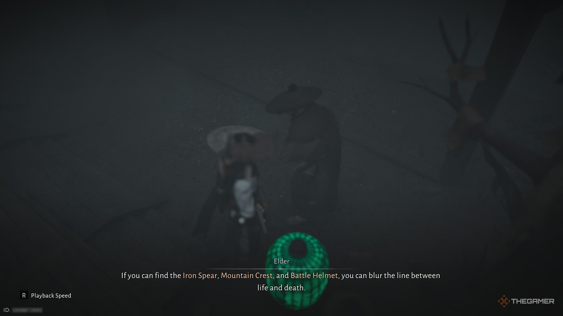When you enter the Ghost Market, the Elder will ask you to find the Iron Spear, Mountain Crest, and Battle Helmet. You can get these by following the green lanterns along each path – each path leads to a chest with one of the items. Here’s where to find them all.