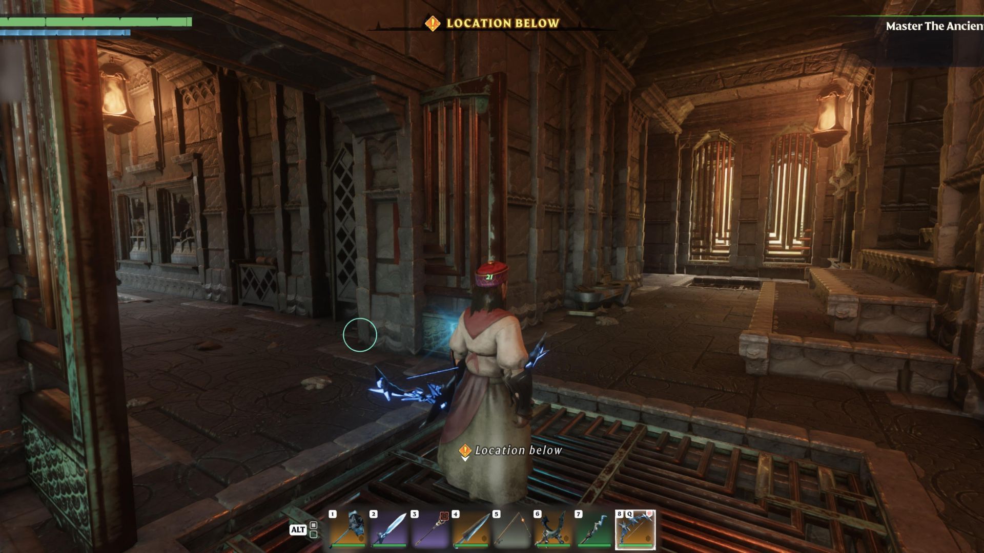 The first floor of the Veilwater Basin Ancient Spire can be challenging. You’ll immediately encounter a hallway filled with electric traps. Pay close attention to how the sparks flow and move cautiously to prevent getting hurt.