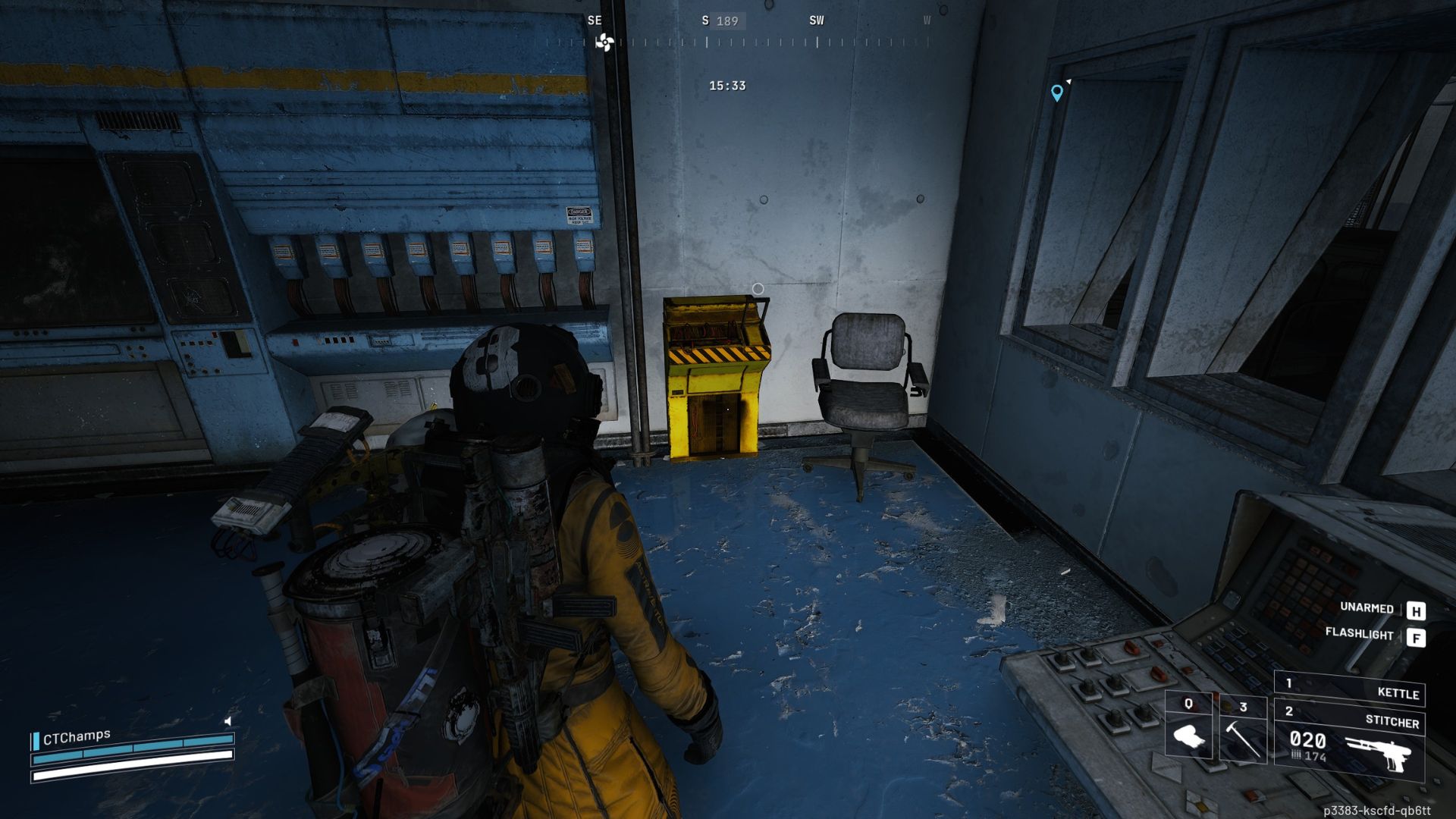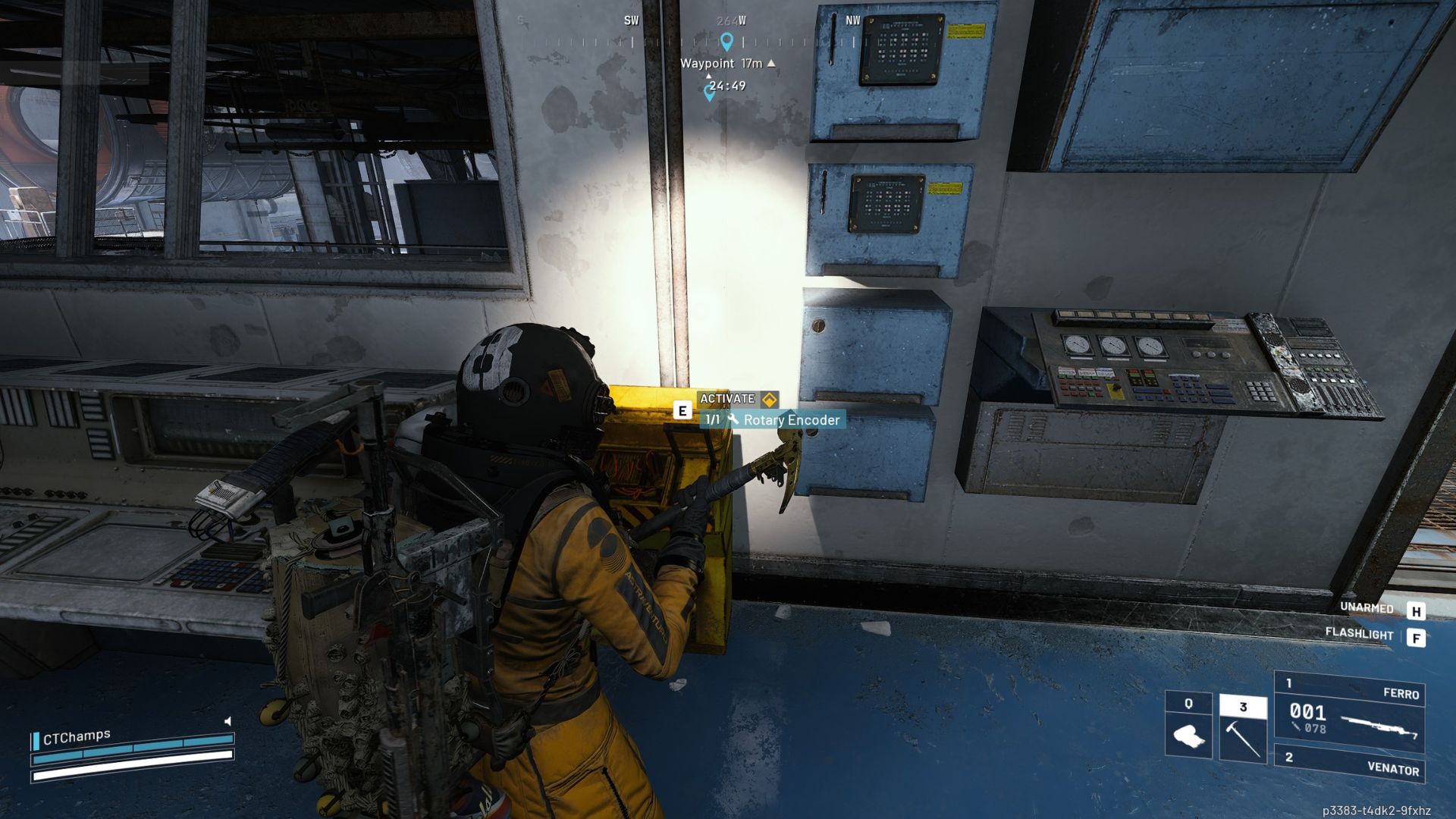 - Once you’re there, look for the glowing yellow control panel. You can interact with it when you’ve got a Rotary Encoder on you.