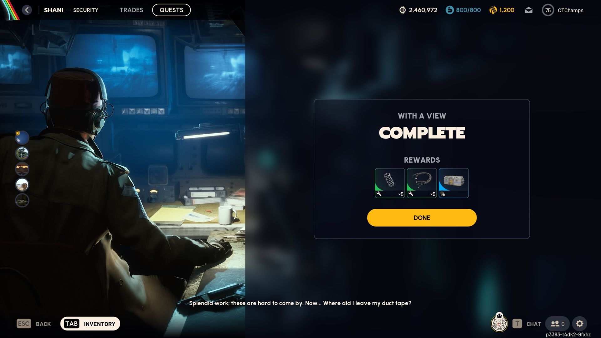 You can start the ‘With A View’ quest by talking to Shani, who works as a Security Trader. She’ll ask you to travel to Stella Montis to look into some strange lights in the sky. To do this, you’ll need to find her an Ion Sputter and a Rotary Encoder first.