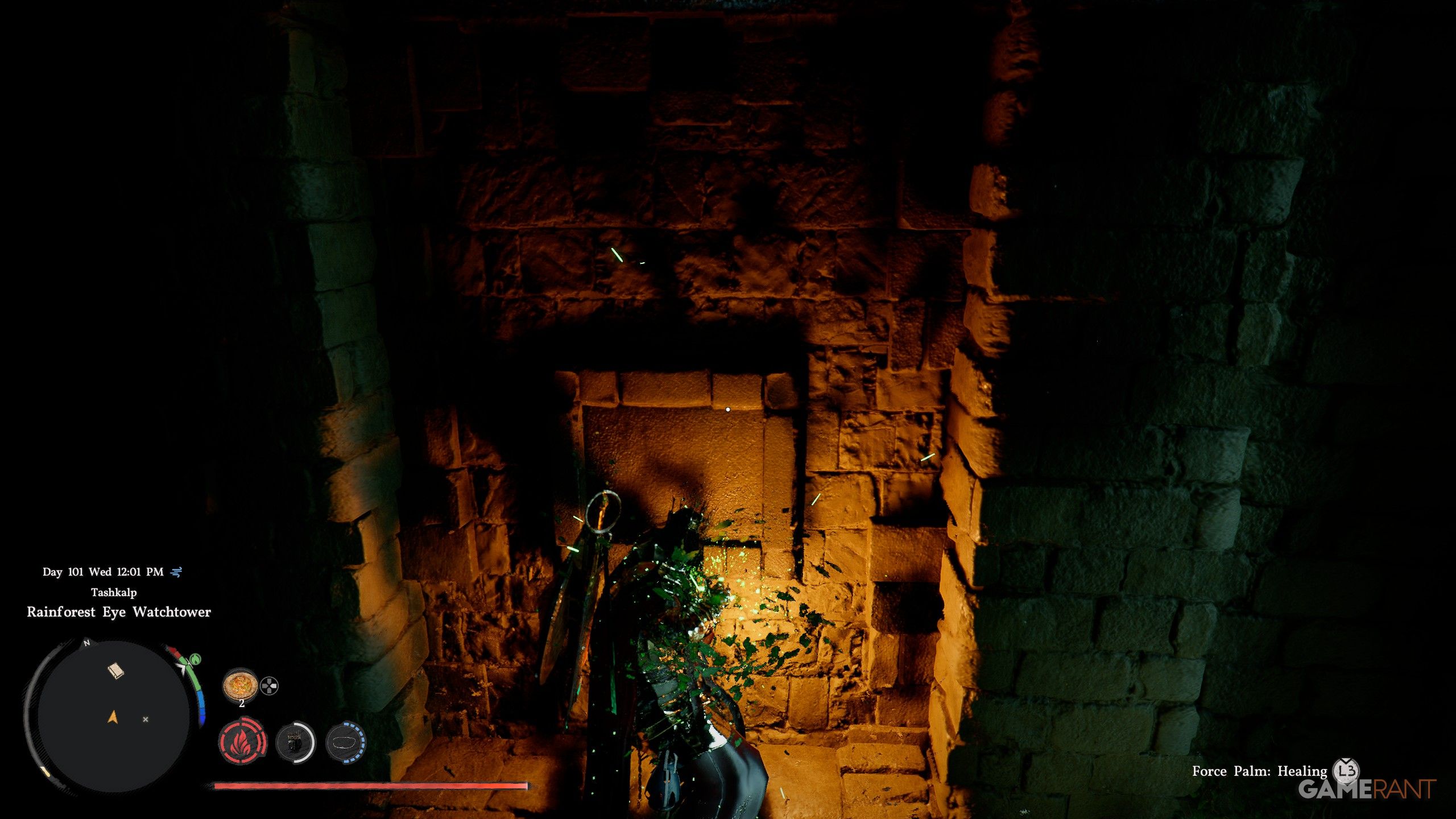 - You’ll now be in the Rainforest Eye Watchtower, and you can Force Palm (R3) a panel on the north wall to enter a secret room.