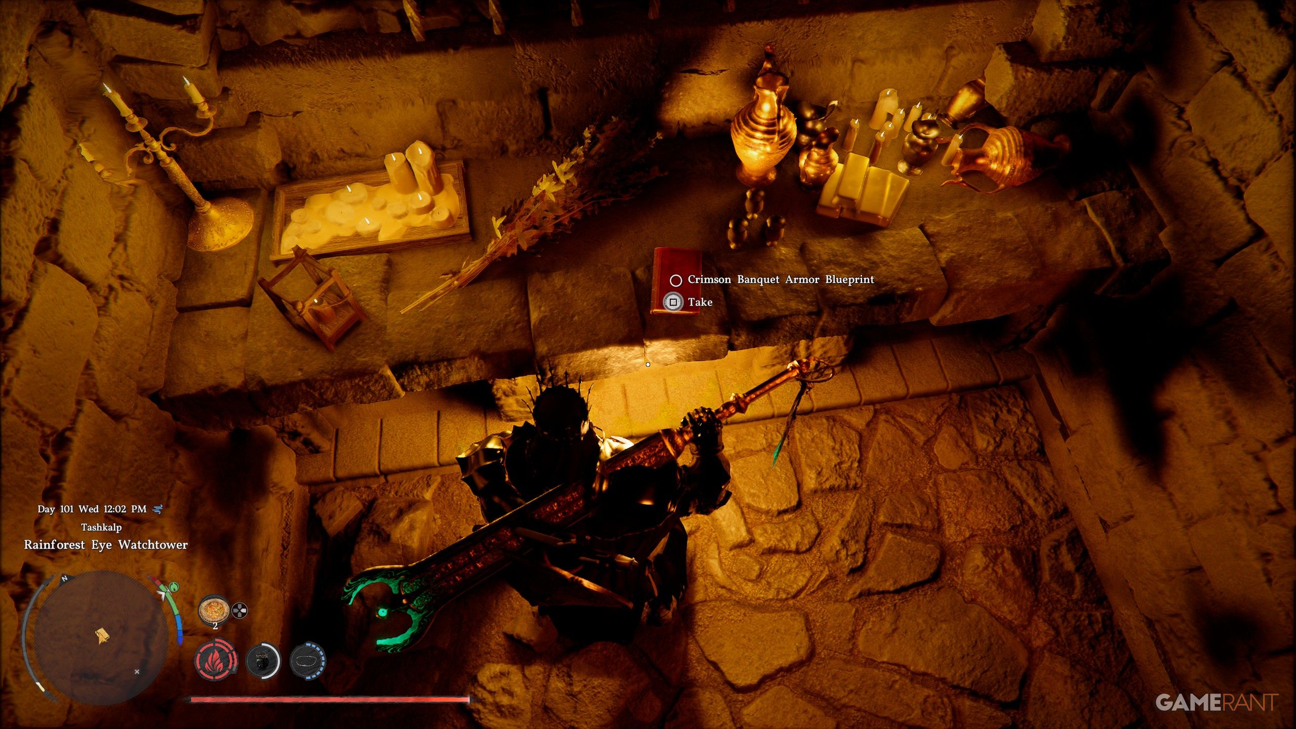 - Enter your inventory and read the Crimson Banquet Armor Blueprint Crafting Book to gain knowledge on its recipe.