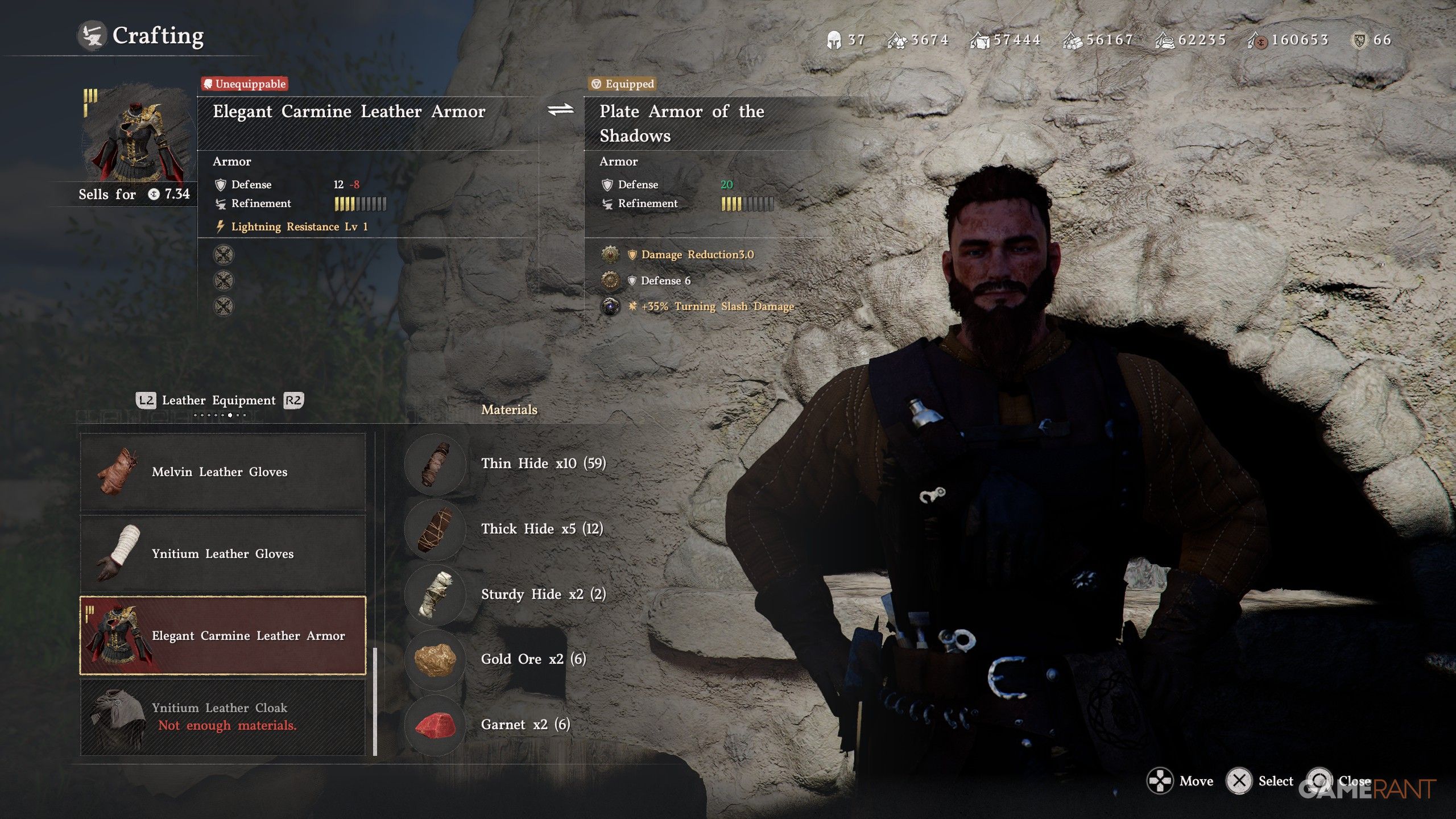 - Towards the bottom of the page, you can now craft “Elegant Carmine Leather Armor” with X/A.