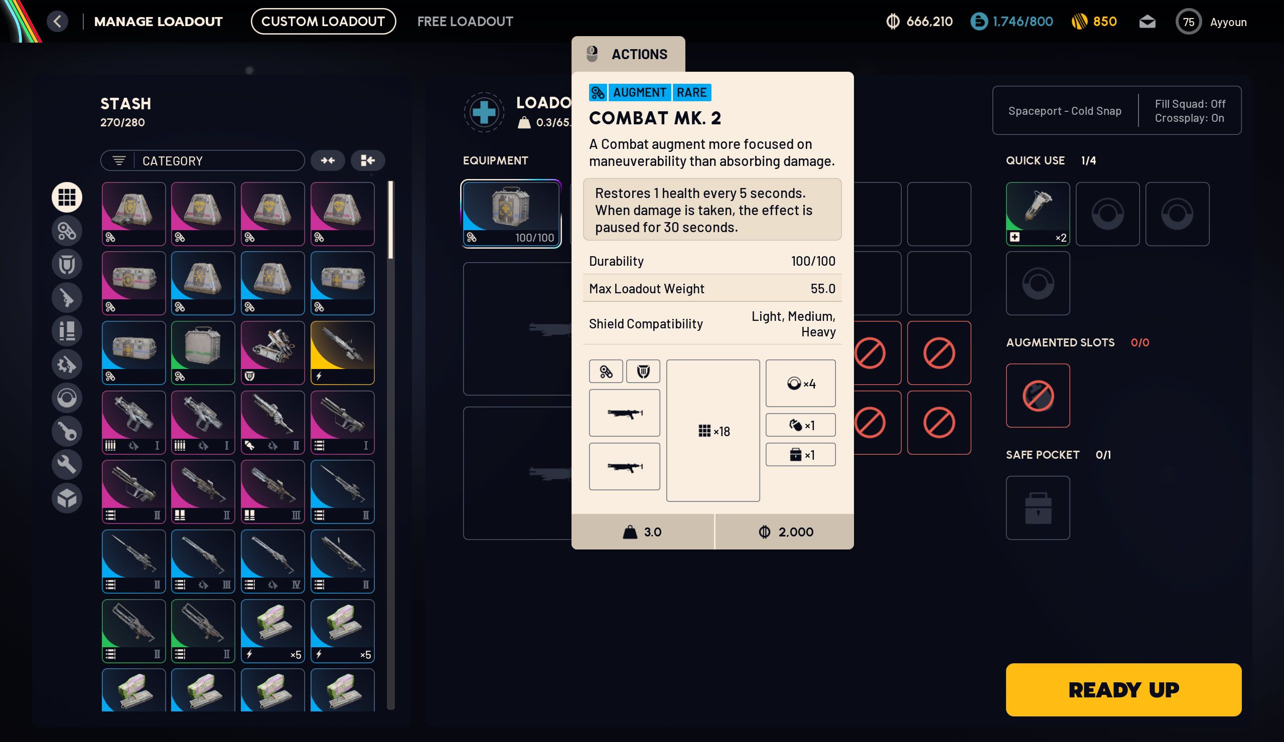 Instead, you can use the Combat MK.2 Augment, which slowly restores 1 HP every five seconds as long as you aren’t taking damage – even minor damage like frostbite will stop the healing. This is really helpful for regaining health when you’re safe, so you won’t have to use as many healing items.