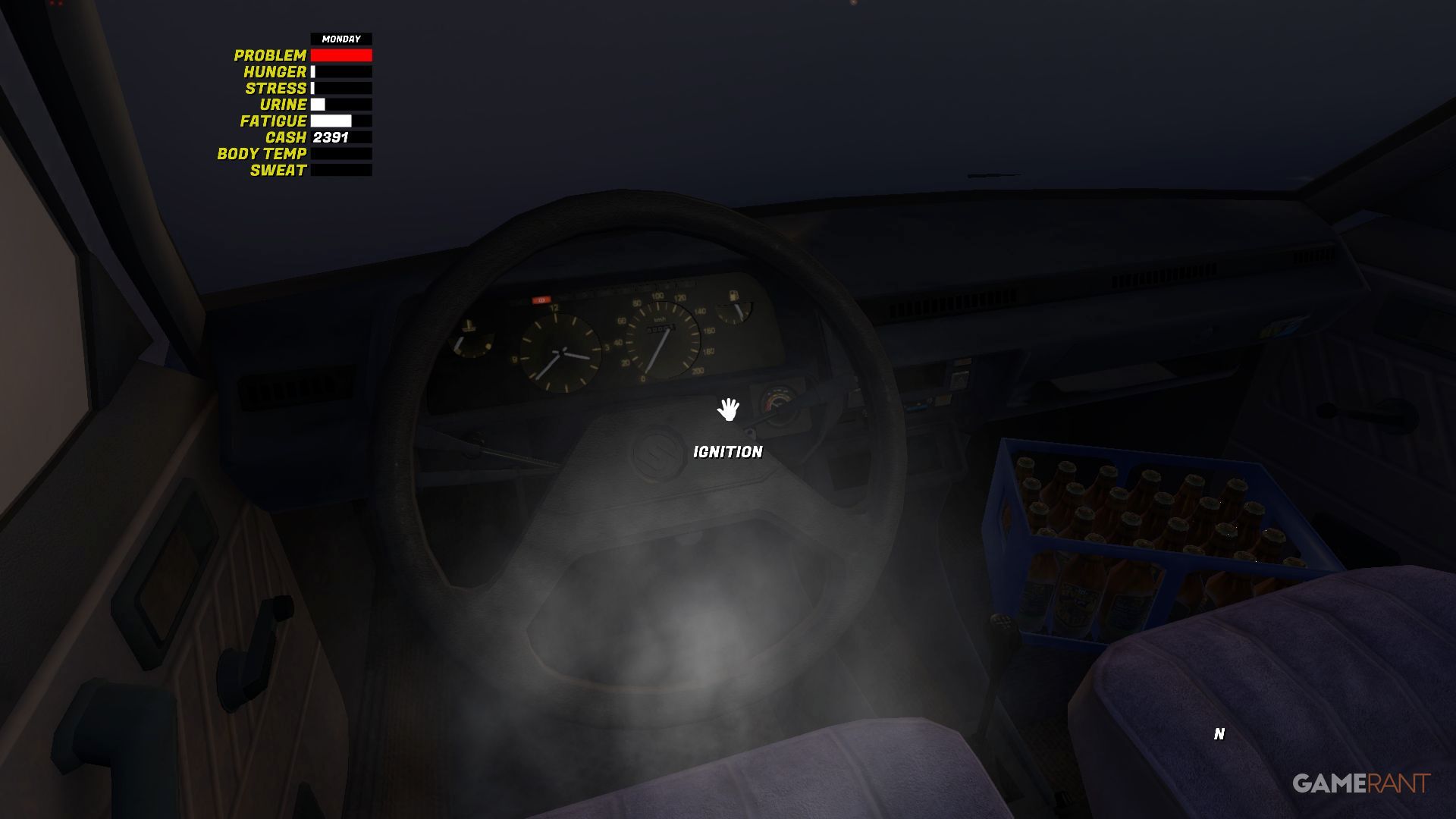 Starting the engine in My Winter Car isn’t as simple as it seems. You’ll first need to switch into driving mode by pressing the Enter key.