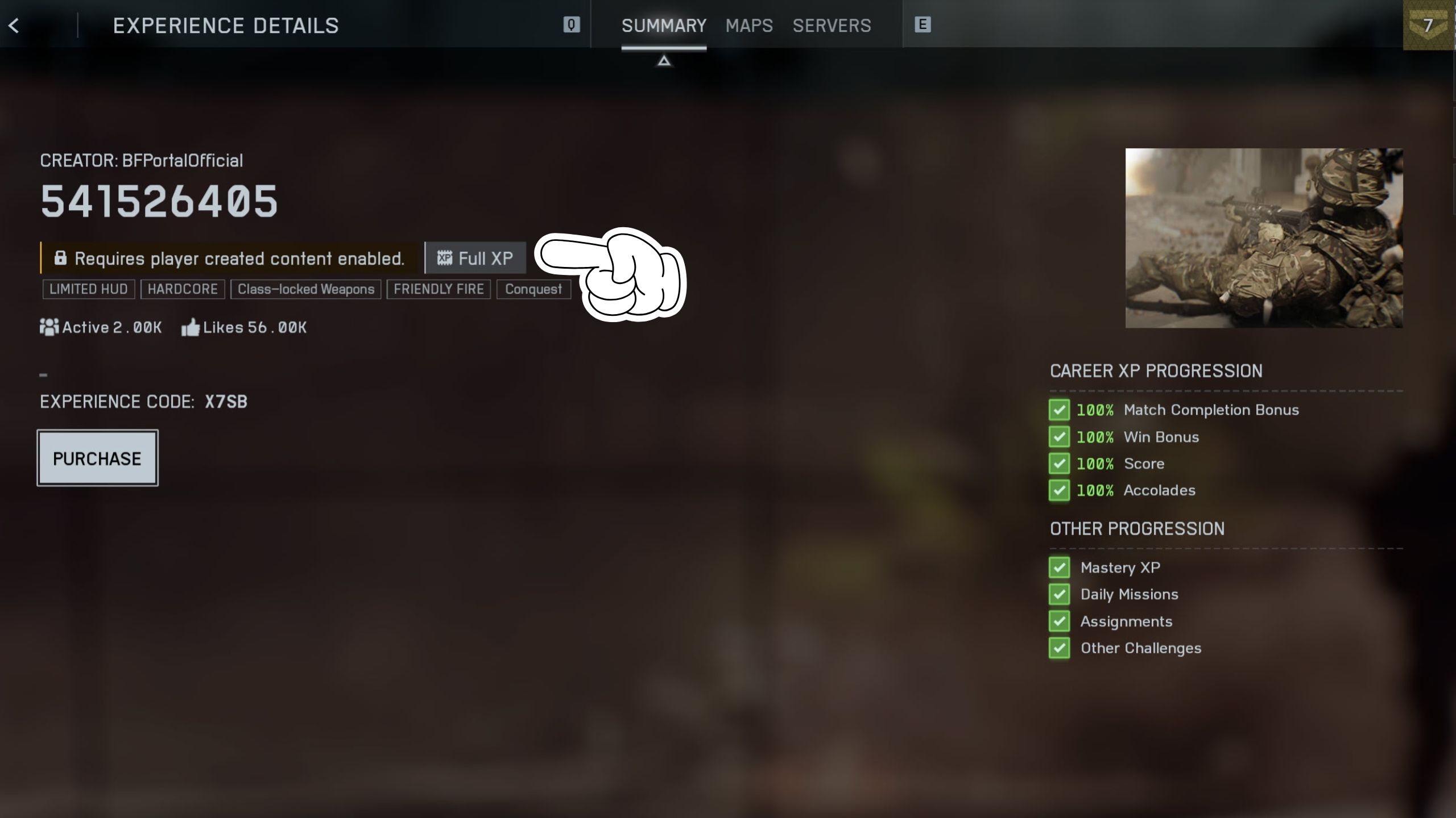 You can discover unique gameplay codes created by other players in Battlefield 6 communities, letting you jump right into custom game modes. These modes are excellent for quickly earning experience points (XP), because the game clearly shows how much XP each one offers. This helps you level up your favorite weapons faster. With Battlefield 6’s progression system requiring a lot of effort, you can also play solo modes with bots, use XP boosters, and complete challenges to make progress.