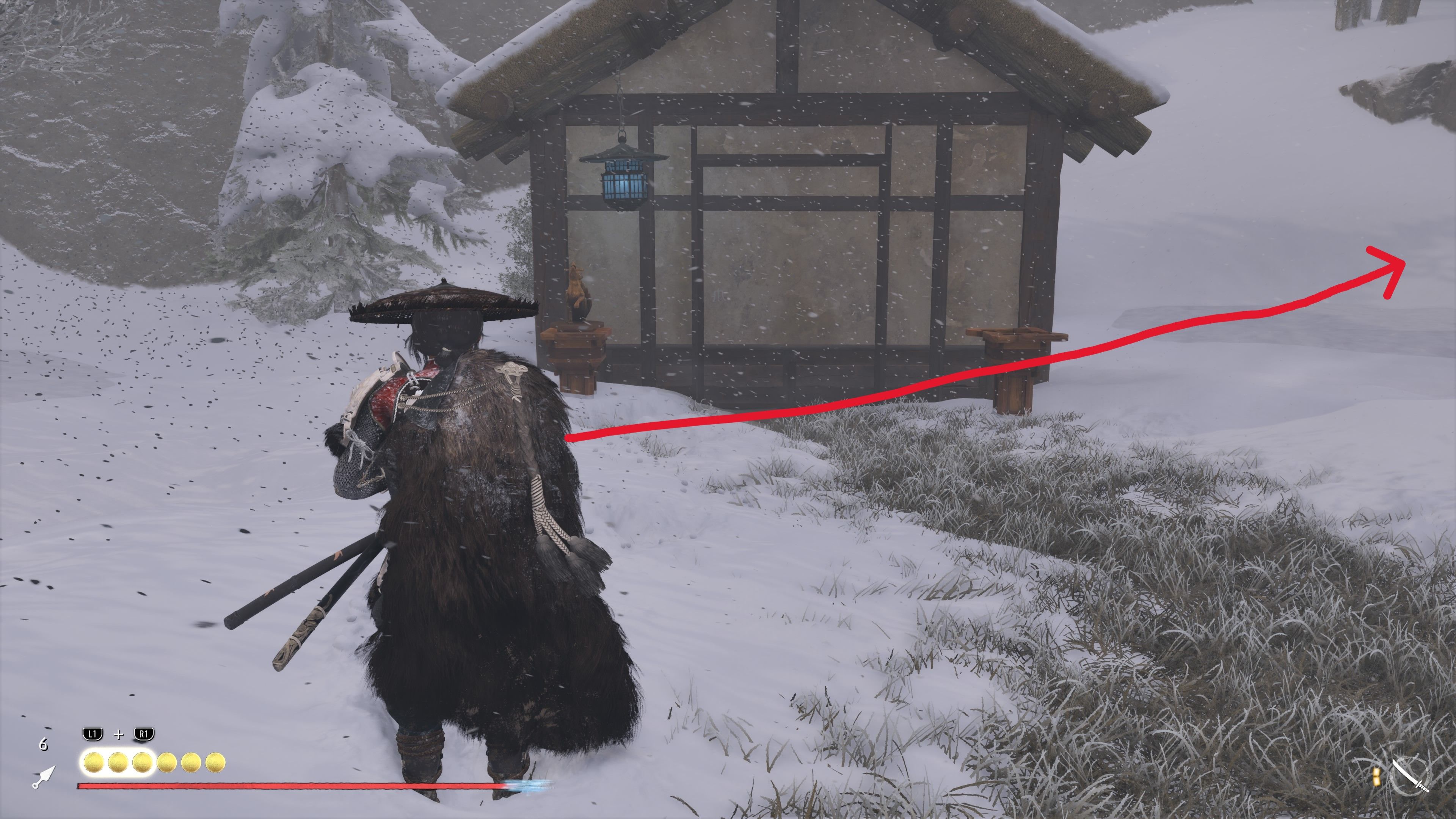 Travel northwest along the Teshio Ridge to reach the Sarobetsu Forest, a snowy area that can be dangerous for Atsu if she isn’t cautious. This harsh tundra demands quick reflexes from players, because the snow gradually depletes their health. You’ll discover the Closed-off Building located directly beneath the letter “A” in “Sarobetsu” when viewing the map.