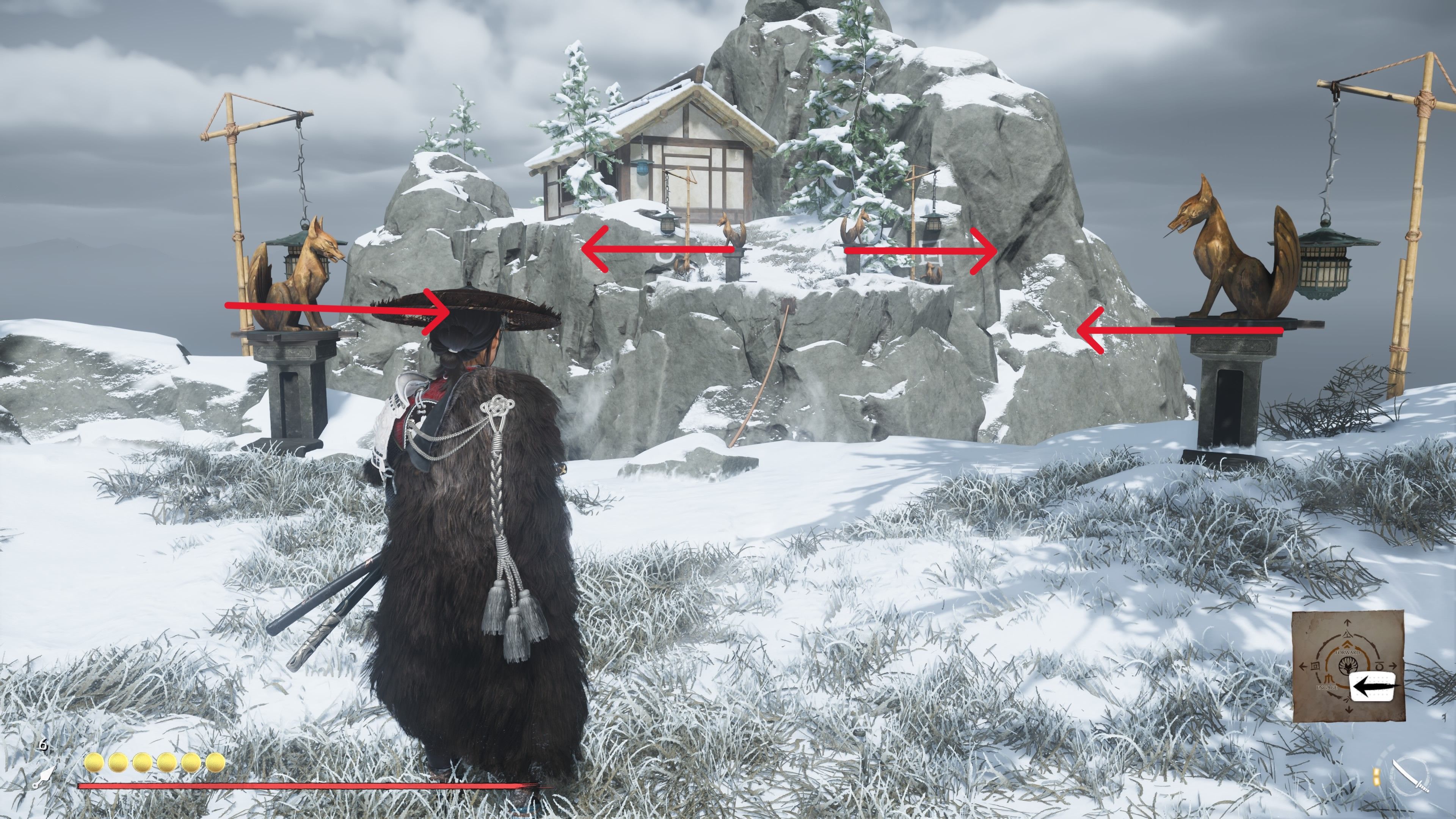 Go to the northern part of Teshio Ridge. You’ll find a Closed-Off Building at Shipwreck Shoal. If you look at the map, it’s located just above the letters “C” and “K” in the word “Shipwreck”. However, two fox statues are blocking the way, as the building is on a mountain that seems impossible to reach. To get to the Closed-Off Building off the coast of Shipwreck Shoal, players need to turn the left fox statue to face right, and then turn the right fox statue to face left. This will activate a rope bridge you can use to reach the building.