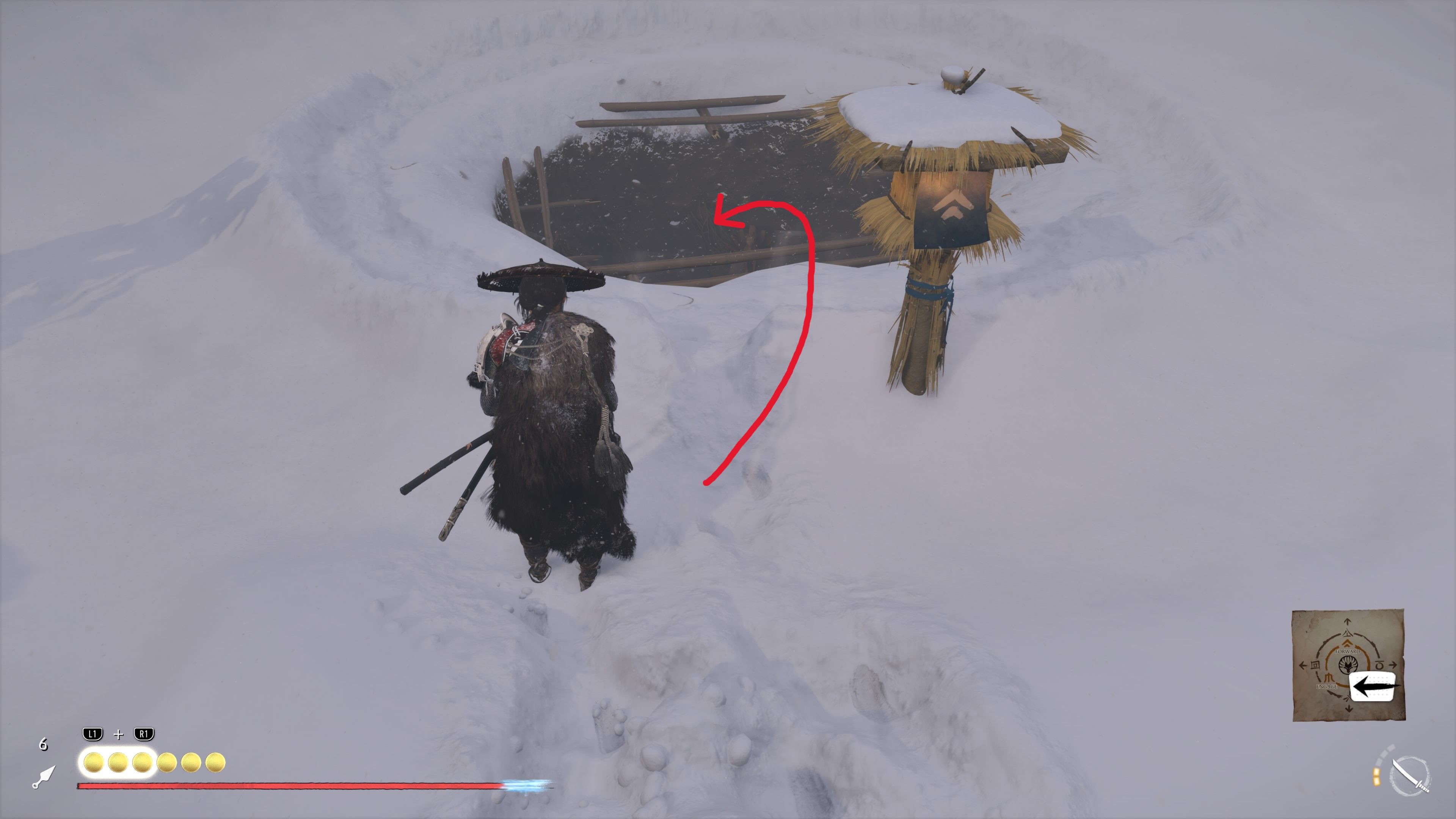 Travel northwest along the Teshio Ridge to reach the Sarobetsu Forest, a snowy area that can be dangerous for Atsu if she isn’t cautious. This harsh tundra demands quick reflexes from players, because the snow gradually depletes their health. You’ll discover the Closed-off Building located directly beneath the letter “A” in “Sarobetsu” when viewing the map.