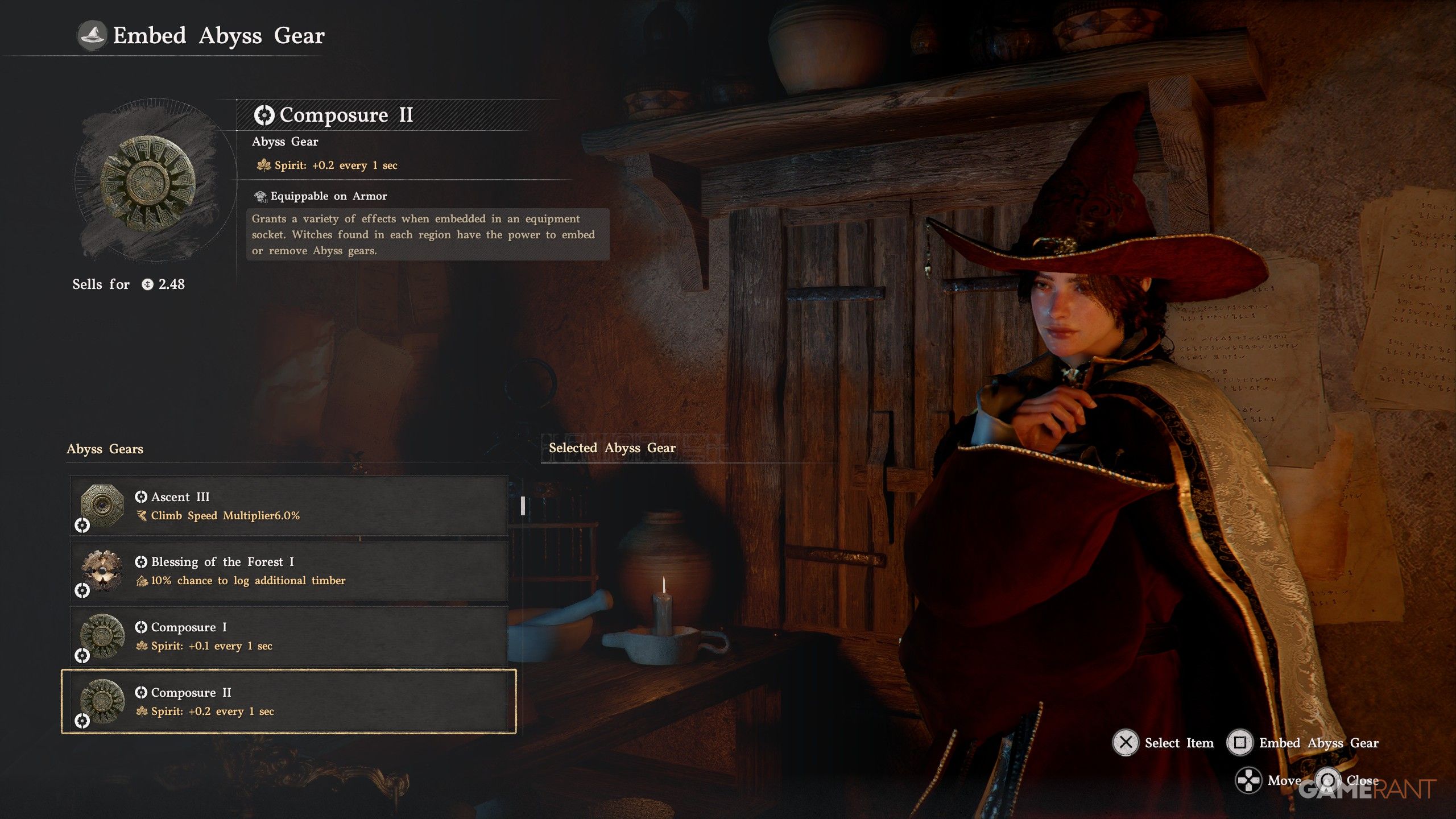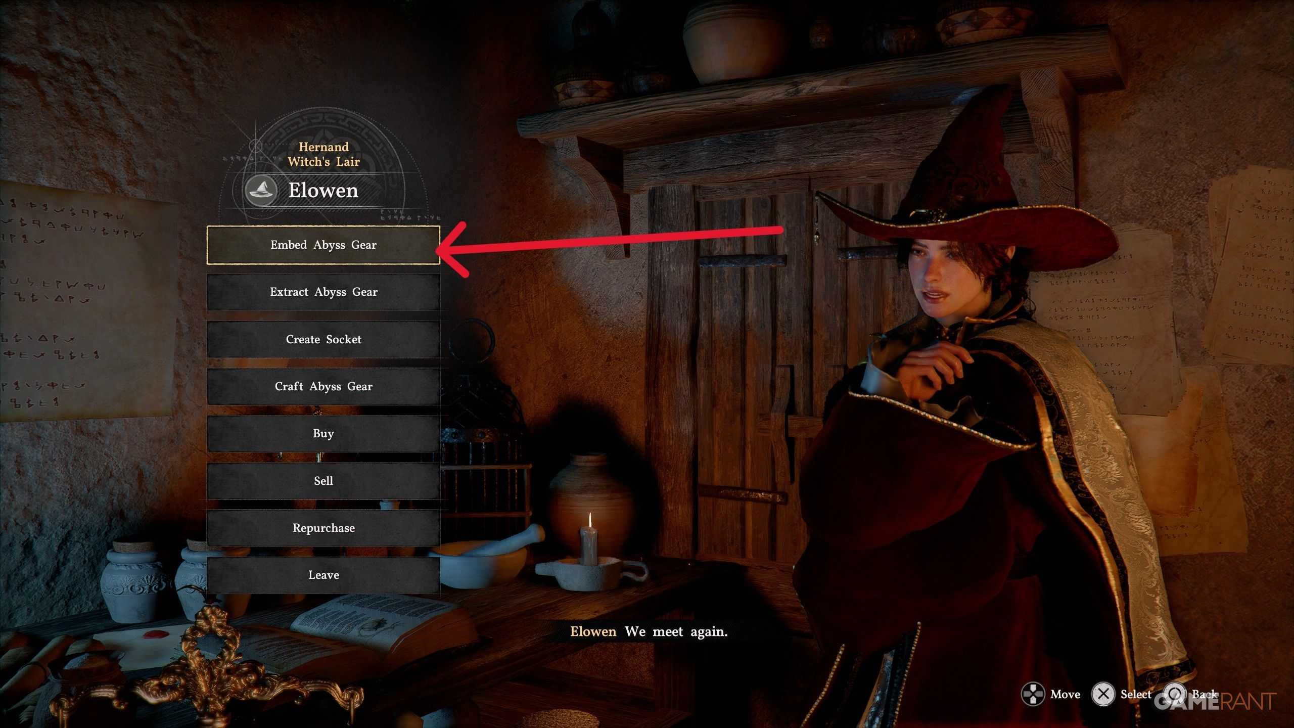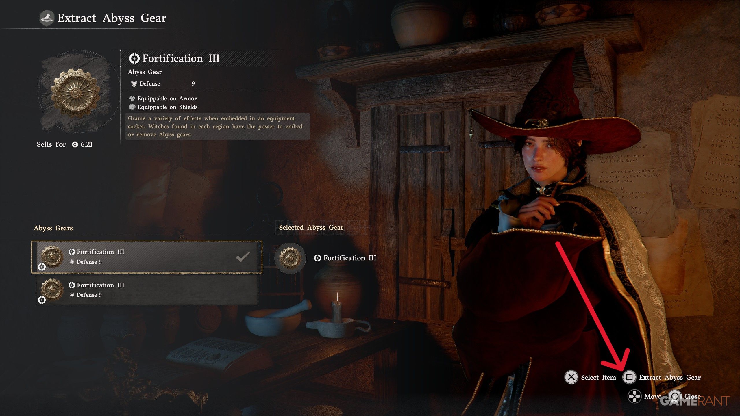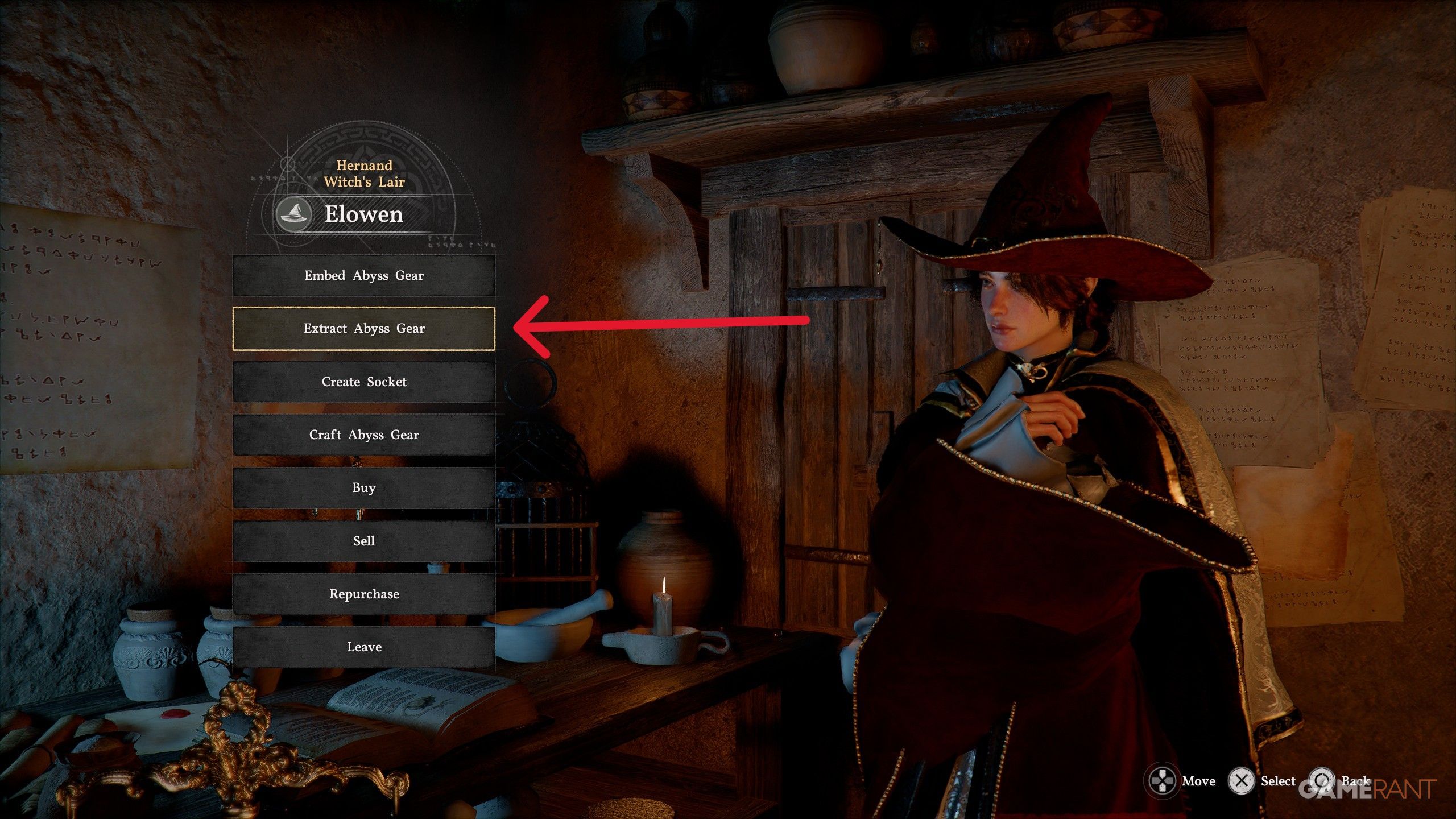 - If it does have an Abyss Gear, take it to a Witch and select “Extract Abyss Gear”.