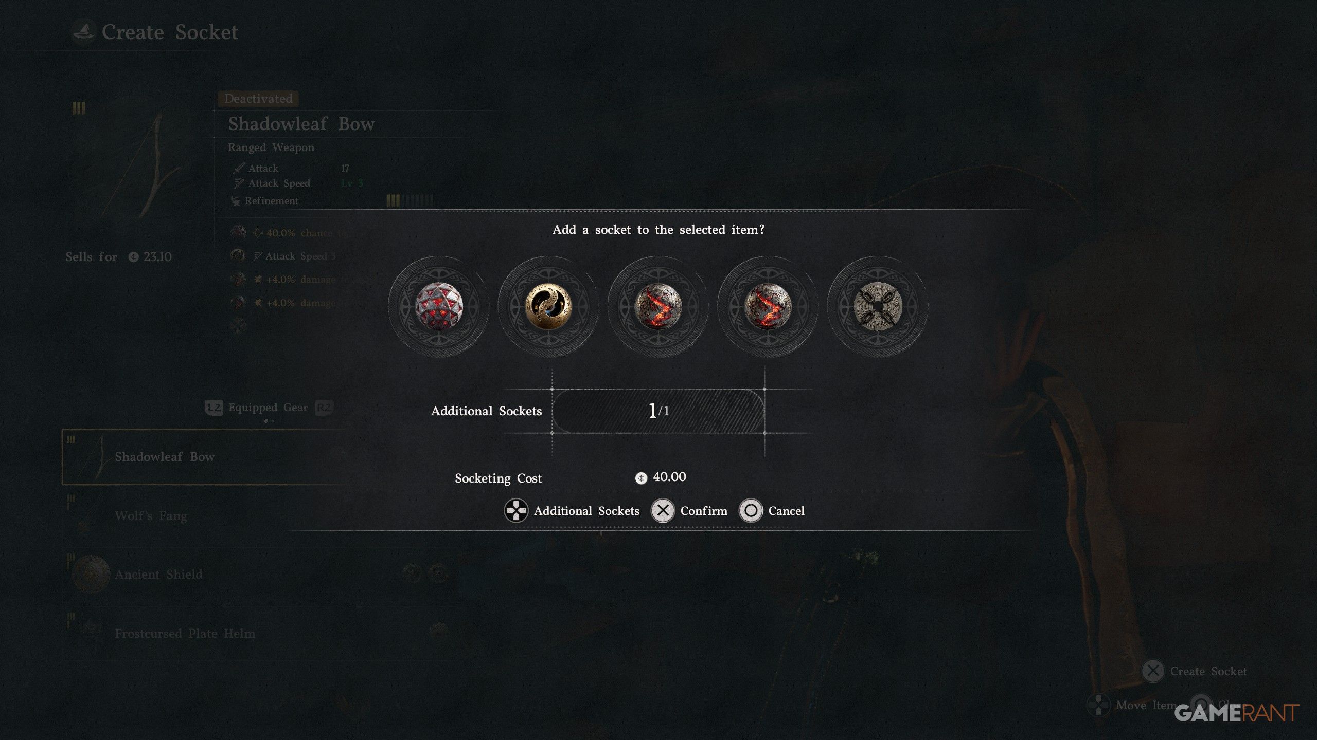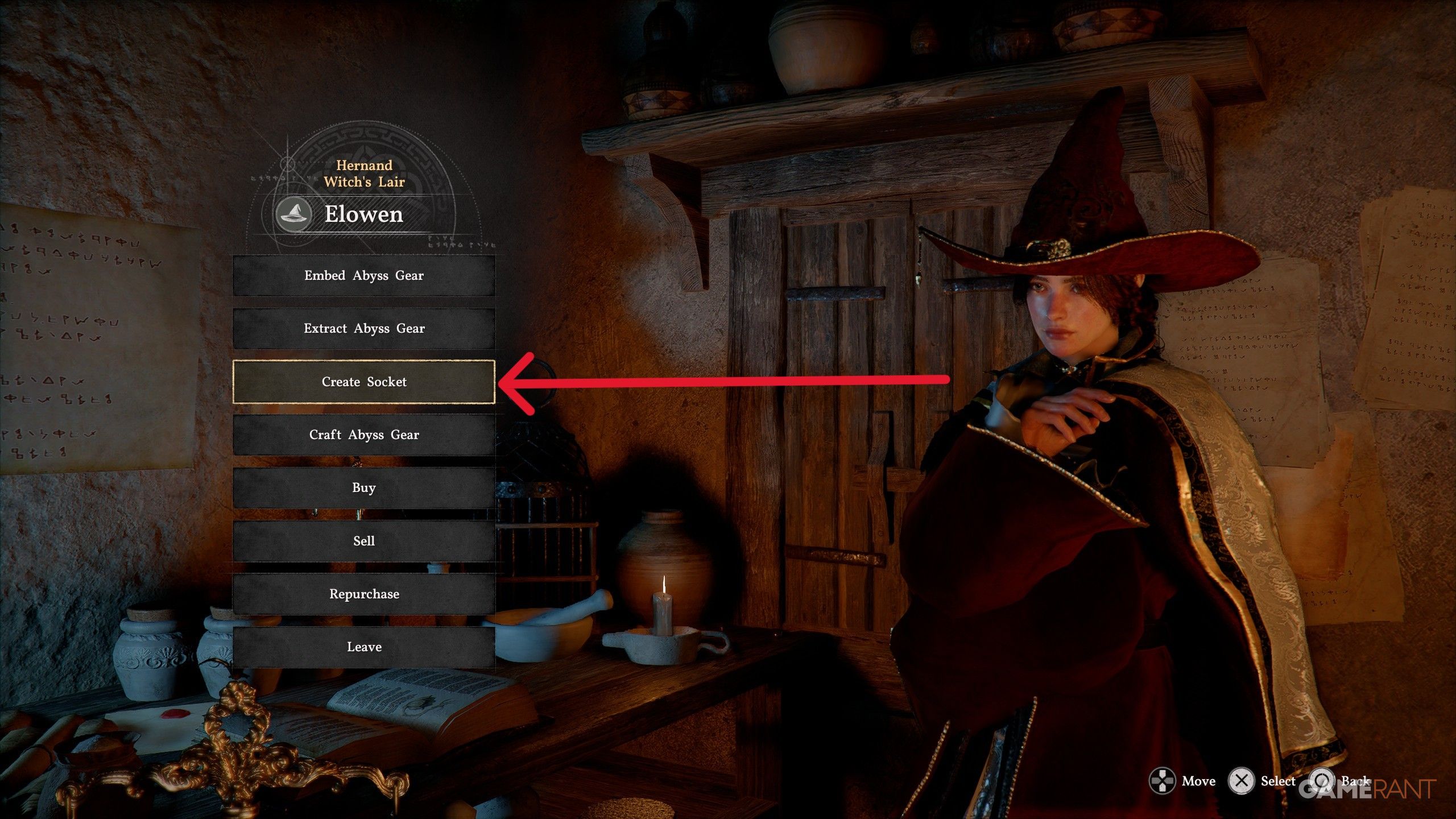 - When you have an Abyss Gear, you can head to a Witch and select “Create Socket” to purchase a slot on any piece of equipment you wish to use.