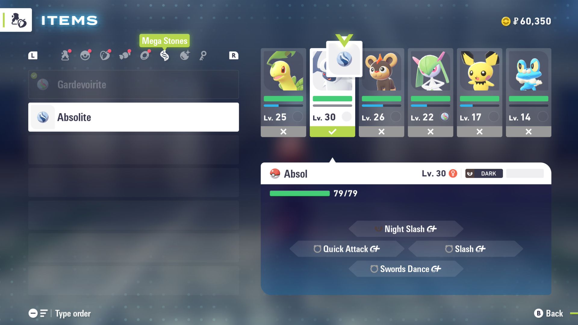 You’ll receive the Absolite when Absol becomes a member of your team, but you’ll need to manually equip it. During the early part of Mission 10, Taunie or Urbain will battle you and show you how to give a Pokémon an item to hold. Use this opportunity to give Absol the Absolite before the battle begins.