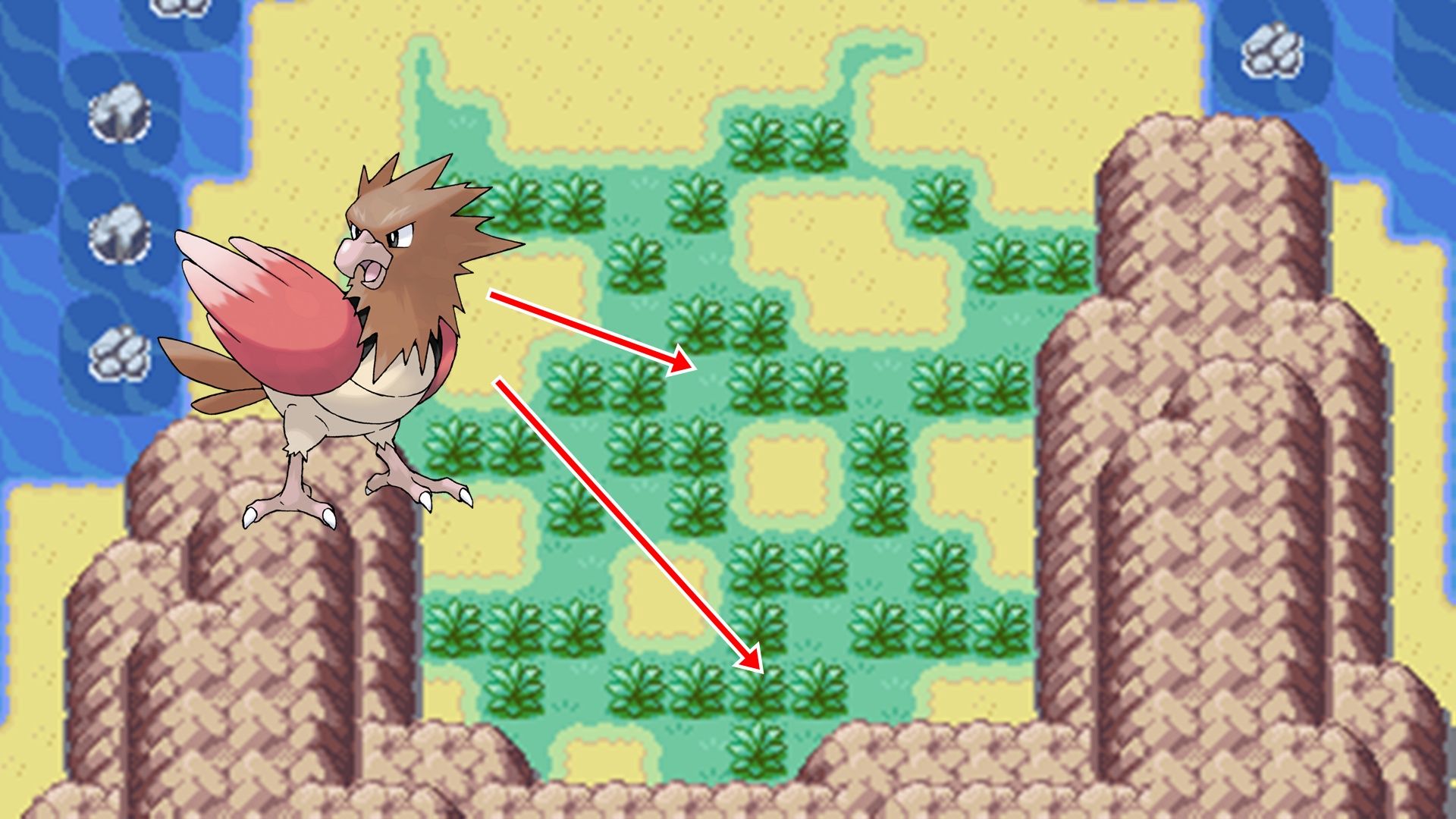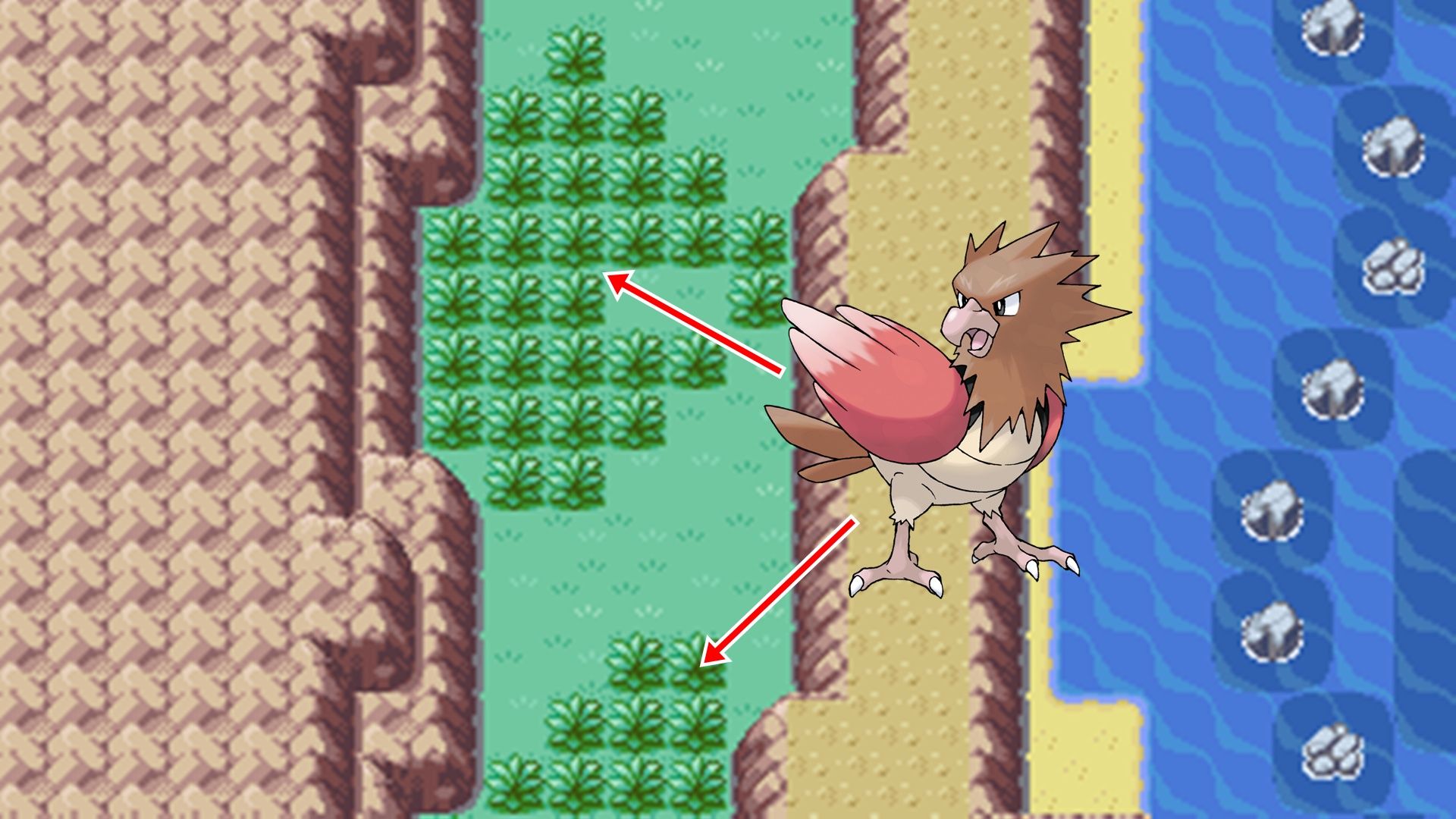 You can still find Spearow even later in the game, specifically on the Sevii Islands. The best places to encounter this Tiny Bird Pokémon are Treasure Beach and Kindle Road, both located on One Island. To reach these areas, you’ll need a Water-type Pokémon that knows the Surf move to travel across the water.