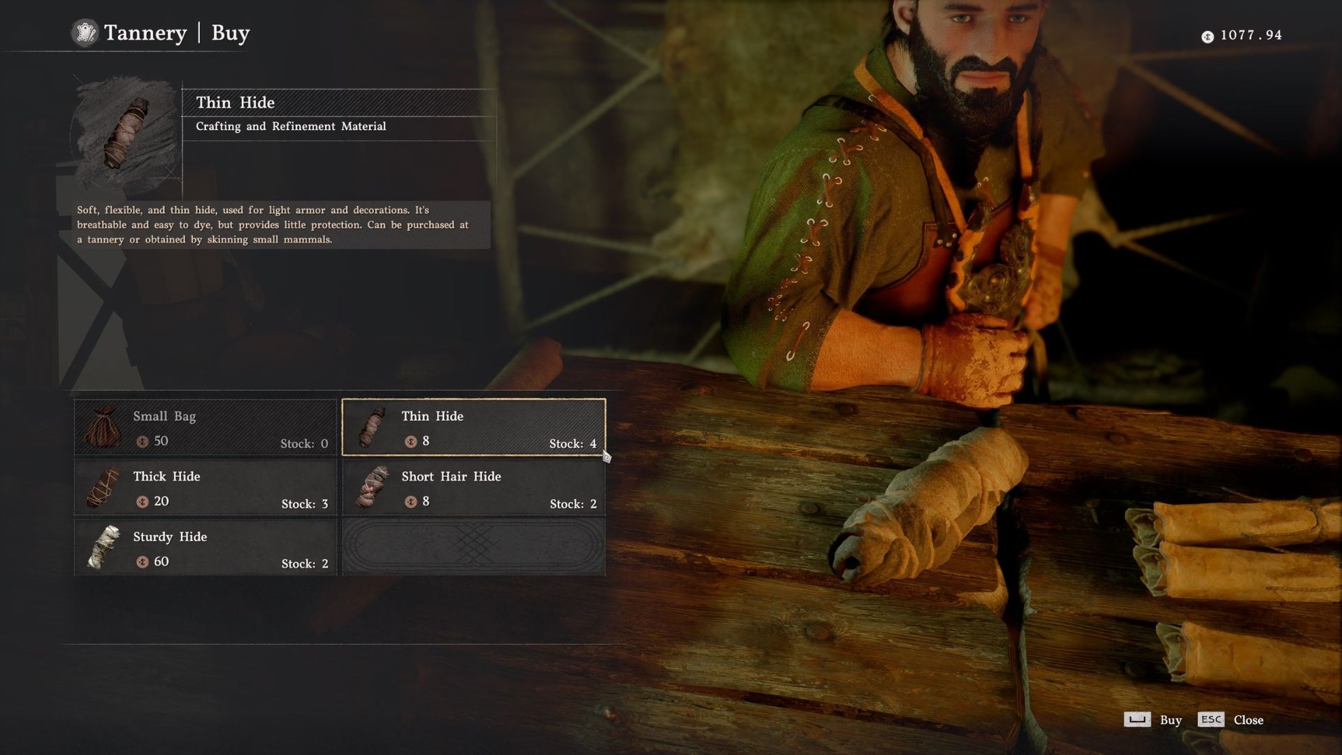 Players can also buy Thin Hide from any tannery vendor for a small amount of copper. These vendors restock their supply of Thin Hide and other materials every five days in the game.