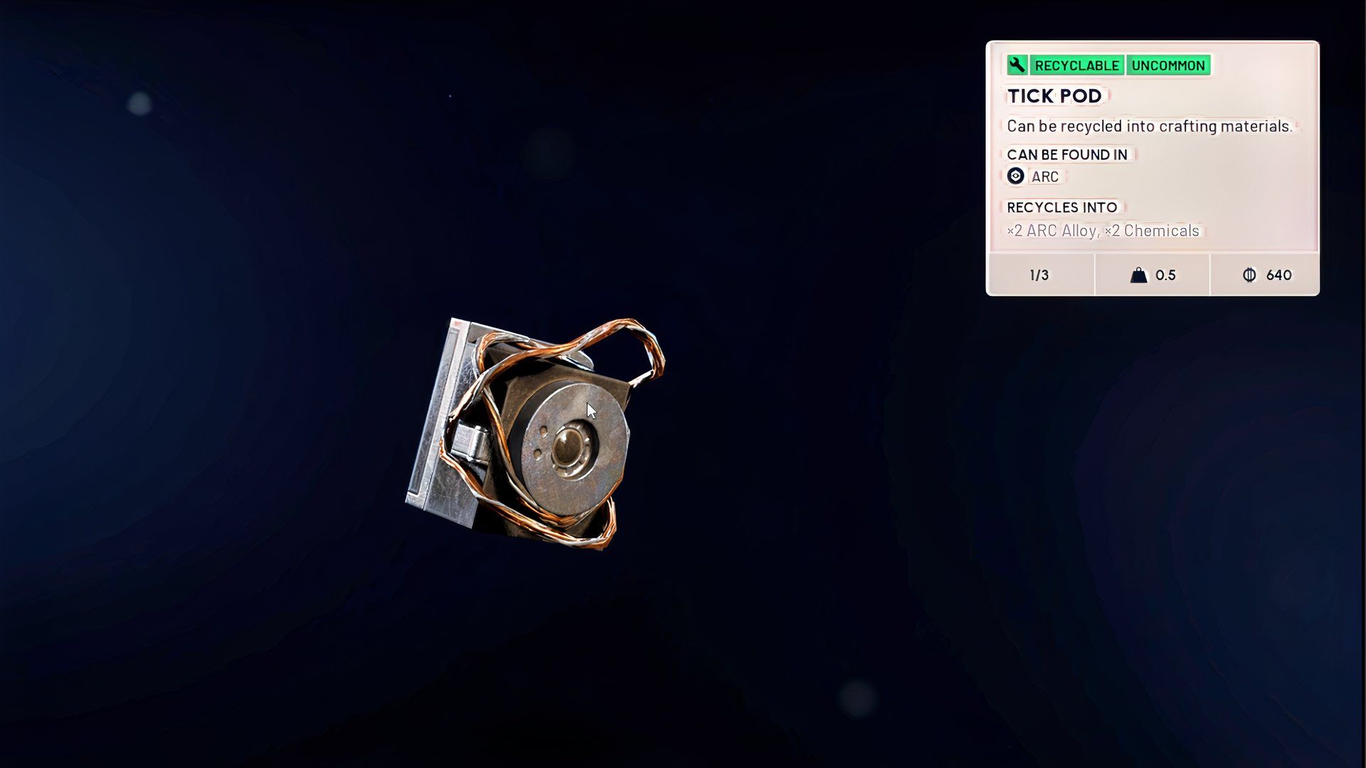 Image via Embark Studios Tick Pods don’t sell for much—just 640 Credits each—so it’s generally more useful to save them. You can use them to improve your gear, create new items, or break them down into important materials for ARC Raiders, like ARC Alloy.