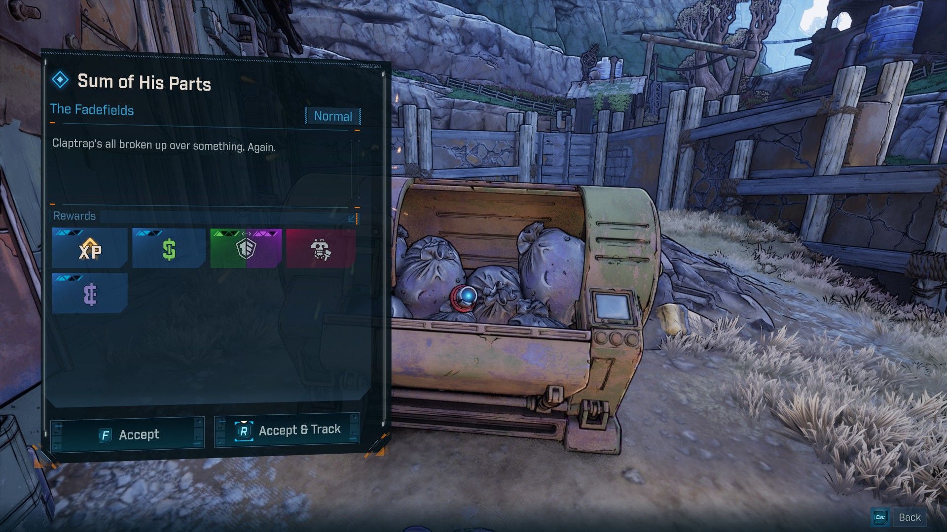 The Claptrap mission can be found near Idolator’s Noose in The Fadefields, slightly to the left of Fortress Indomita at the Racketrun Point of Interest. Here, gamers will stumble upon Claptrap’s eye amidst some trash. As usual, it’s a quest involving collecting items and reassembling Claptrap with the lure of exceptional rewards. However, remember that Claptrap is known for his deceitful nature, so the ‘epic’ loot might not be as impressive…