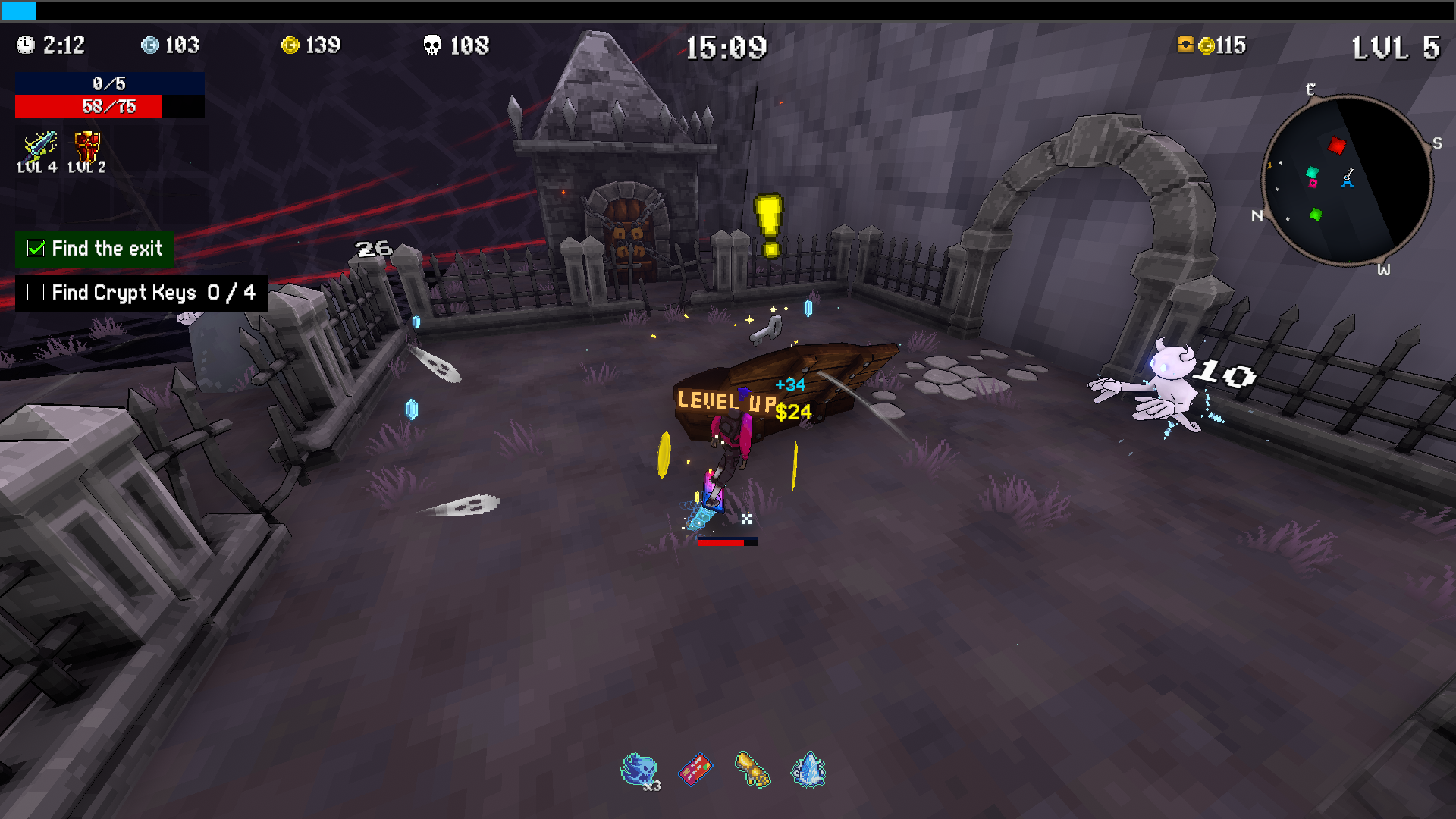 To start a run in Graveyard, players need to escape the Crypt within about a minute. Once outside, they’ll have to locate four Crypt Keys. These keys unlock the path to the main boss.