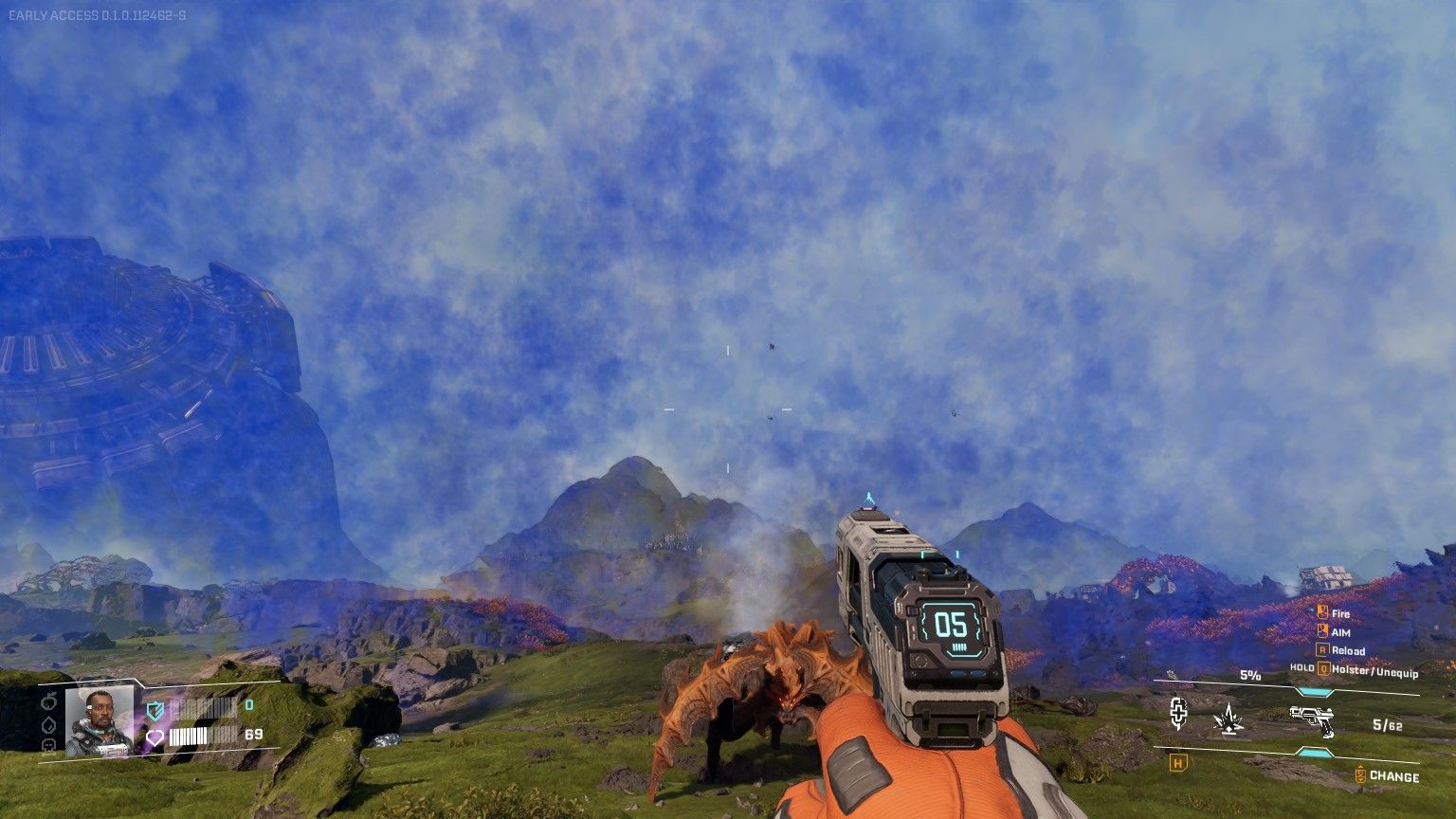 - Defensive mode: The Goliath slows down and covers its front with its claws, turning invulnerable to fire. It will keep chasing players and, when in range, execute a charge.
