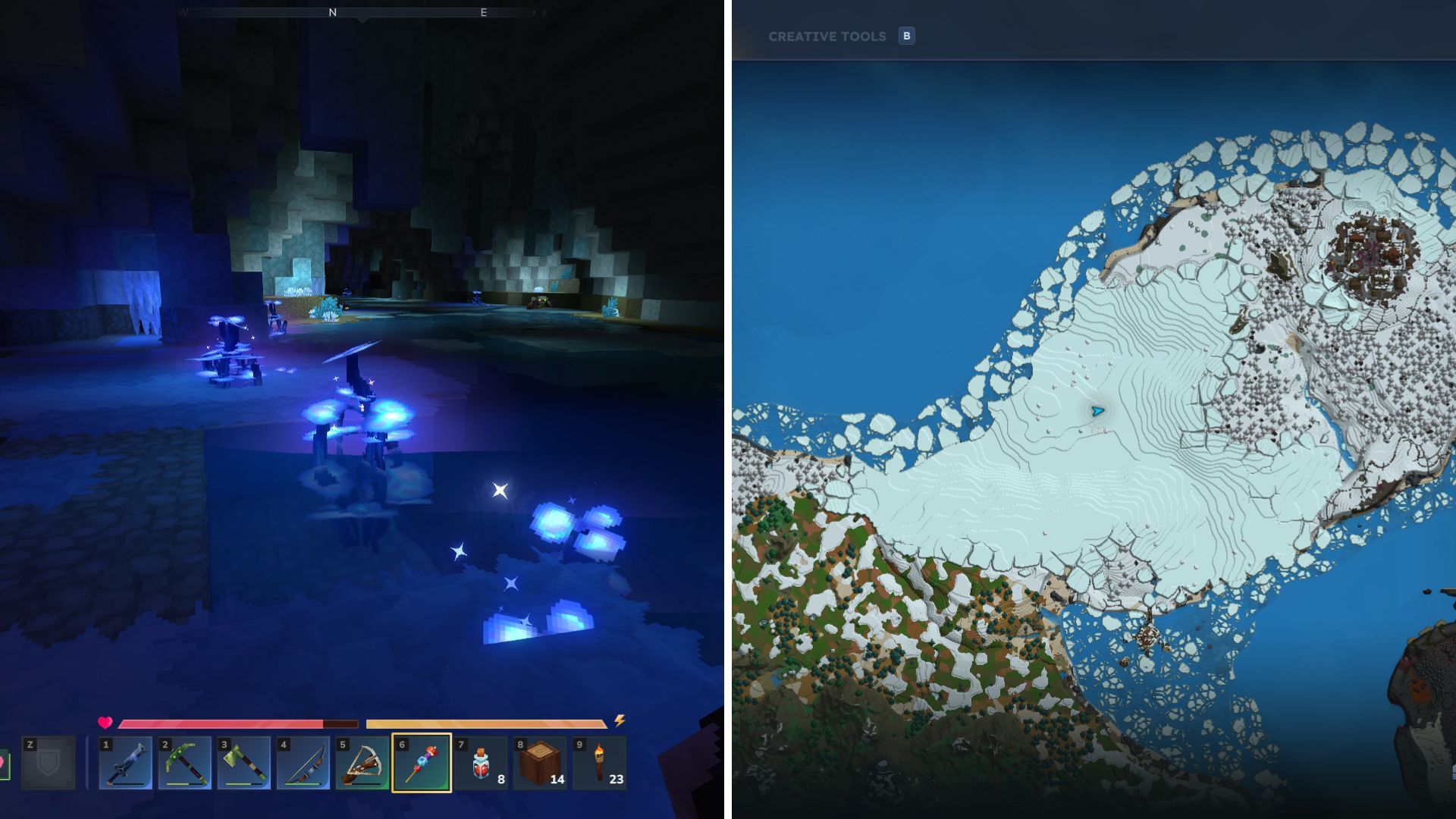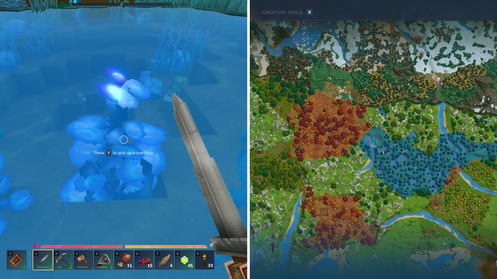 If you’re having trouble locating a blue forest biome, or if one hasn’t appeared close by, you can try the Boreal Biome instead. Underneath the large snowy areas, you’ll discover frozen tunnels with a much greater amount of Azure Kelp.