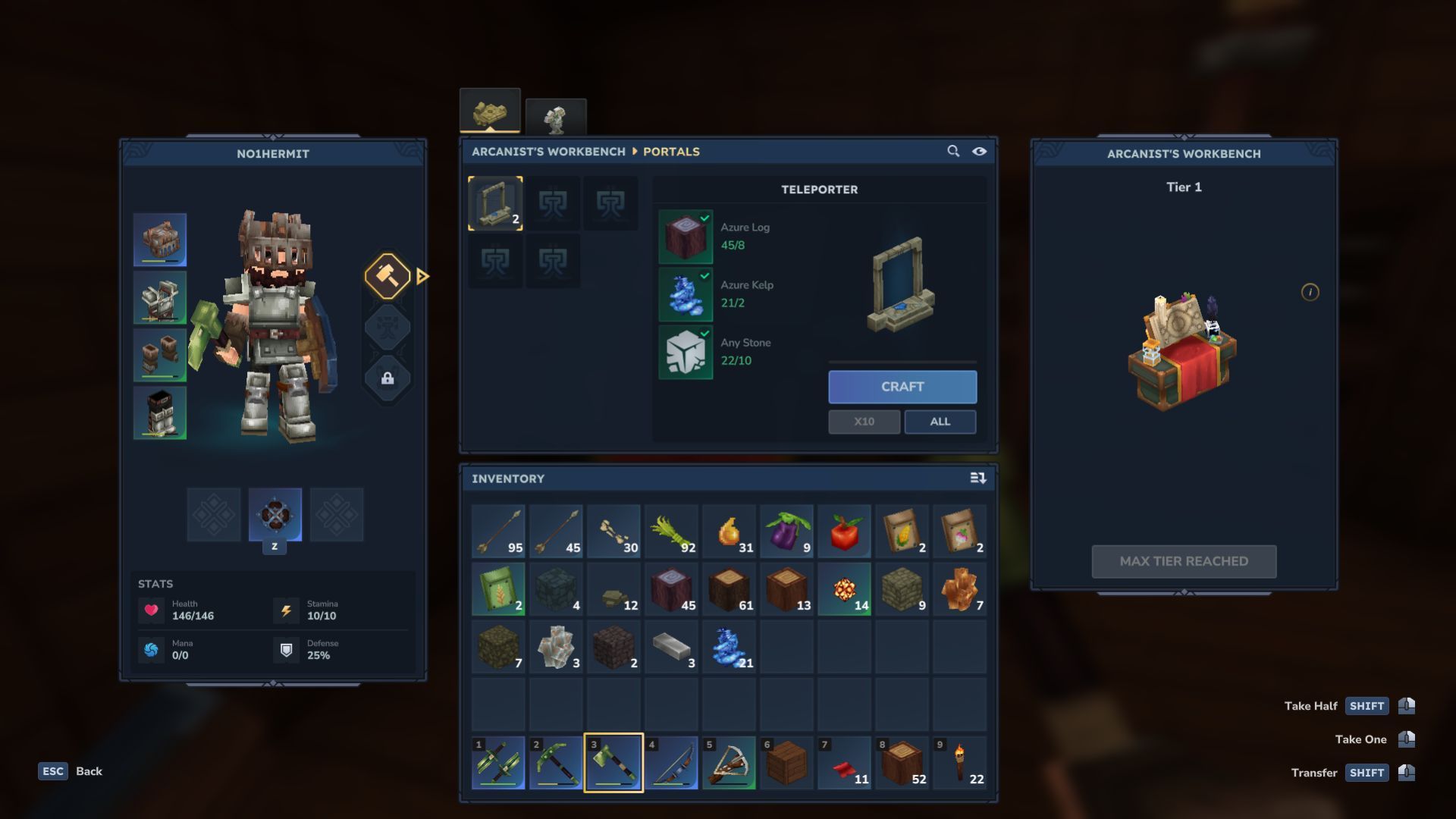 To build a teleporter, you’ll first need to make an Arcanist’s Workbench. You can craft this on any Tier 2 Workbench using these materials: