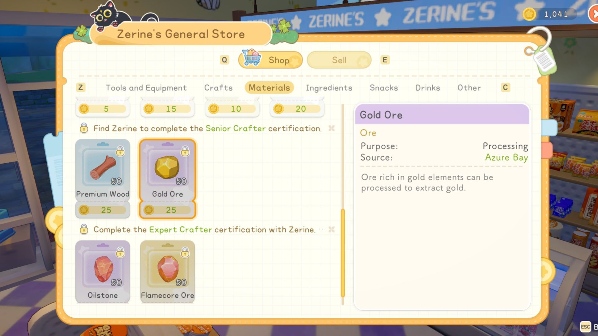 To buy gold ore from Zerine, players must first reach the level of Senior Crafter. Zerine sells each gold ore for 25 coins, and players with a fully upgraded Supply Boost can purchase up to 50 ores.