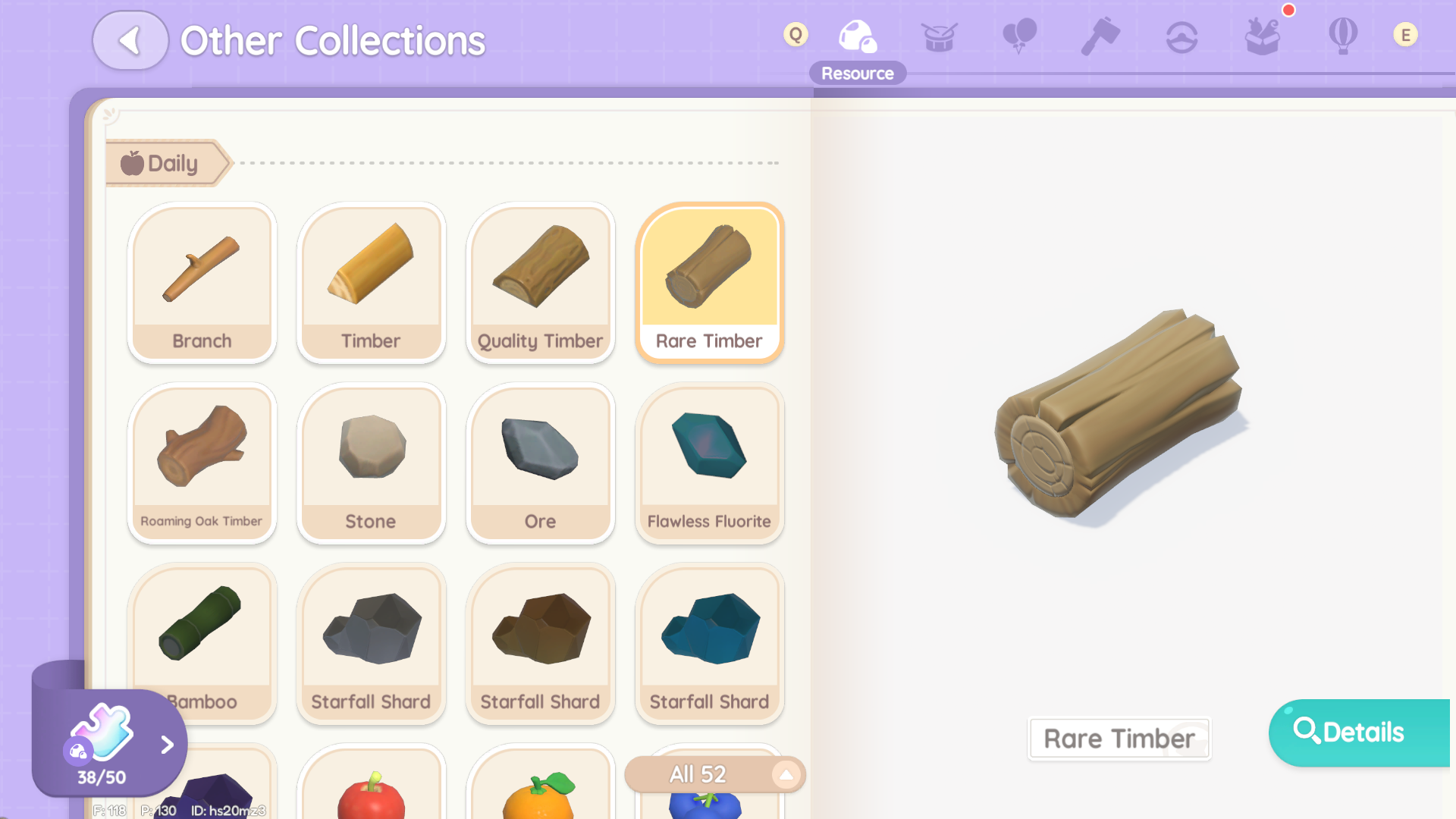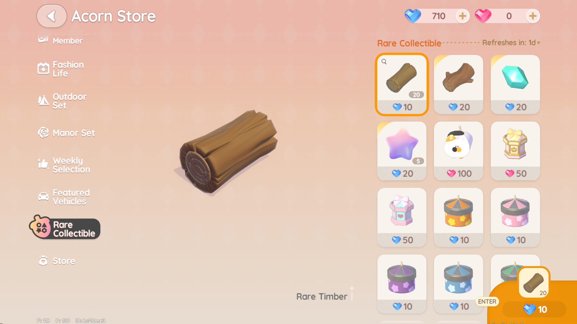 Collecting wood from trees around the map is a good way to get Rare Timber, but large trees have a two-hour cooldown before you can gather from them again. If you’re running low on Rare Timber, you can always buy more at the Acorn Store.