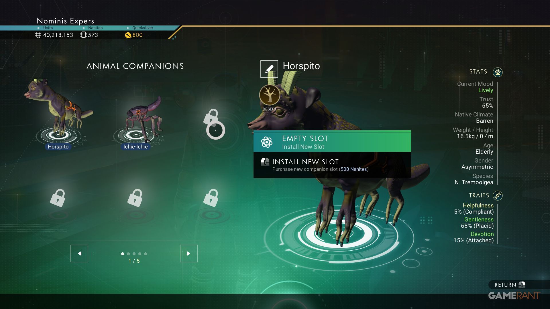 When you first start playing, you’ll have space for only two companions. You can buy more companion slots using Nanites, the game’s rarer currency. The first additional slot costs 500 Nanites, and each one after that gets more expensive – increasing to 1000, and so on.