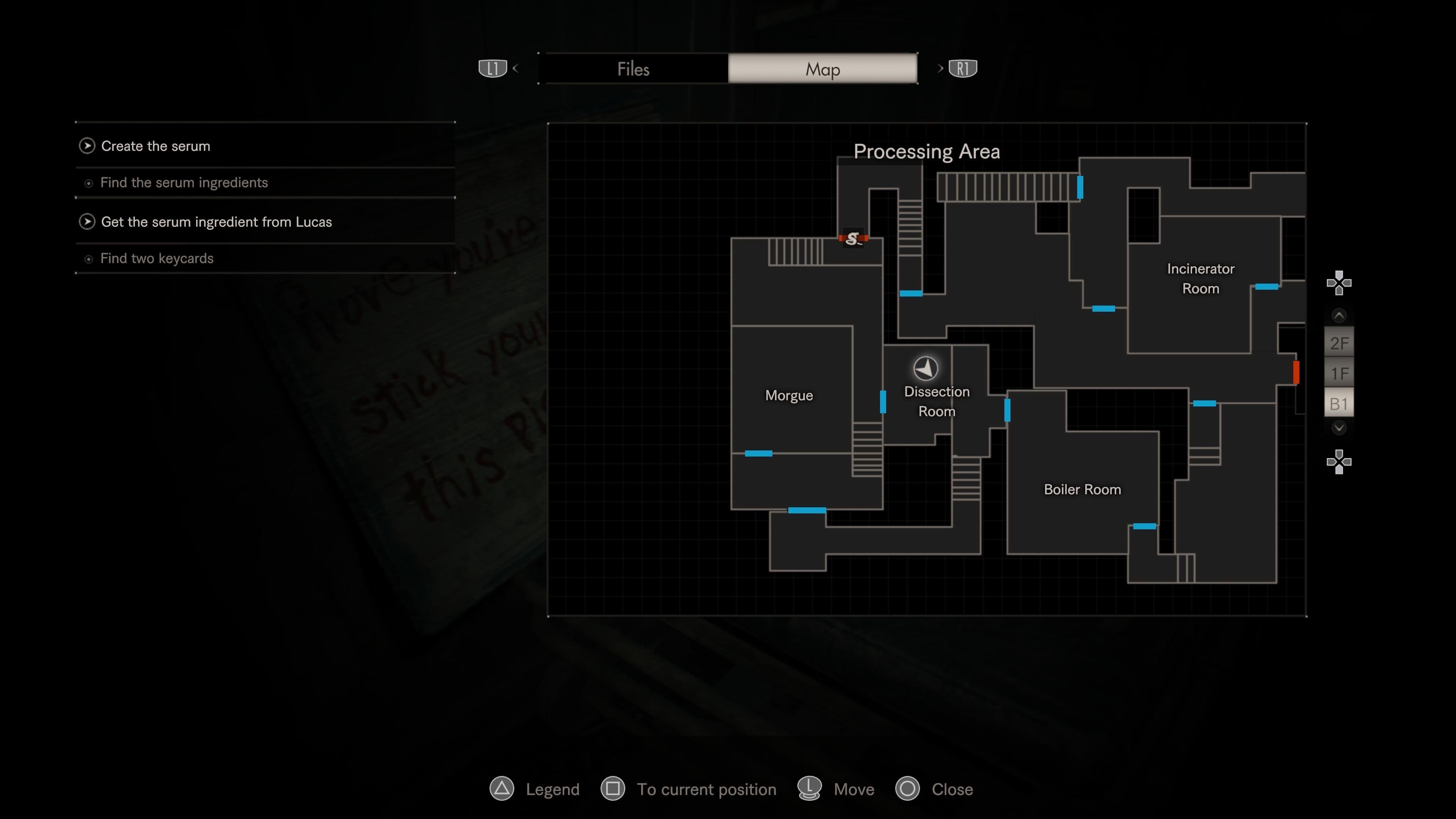 Ethan discovers the body of the police officer who tried to help him early in the game, in the Dissection Room. Examining the wound on his neck will give you the Snake Key. This key unlocks the snake door shortcut, which leads back towards the entrance of the Processing Area and up to the second floor of the main house. Be prepared for more Molded enemies to appear. You can use crafting recipes to create ammo or healing items if needed before you leave the Dissection Room.