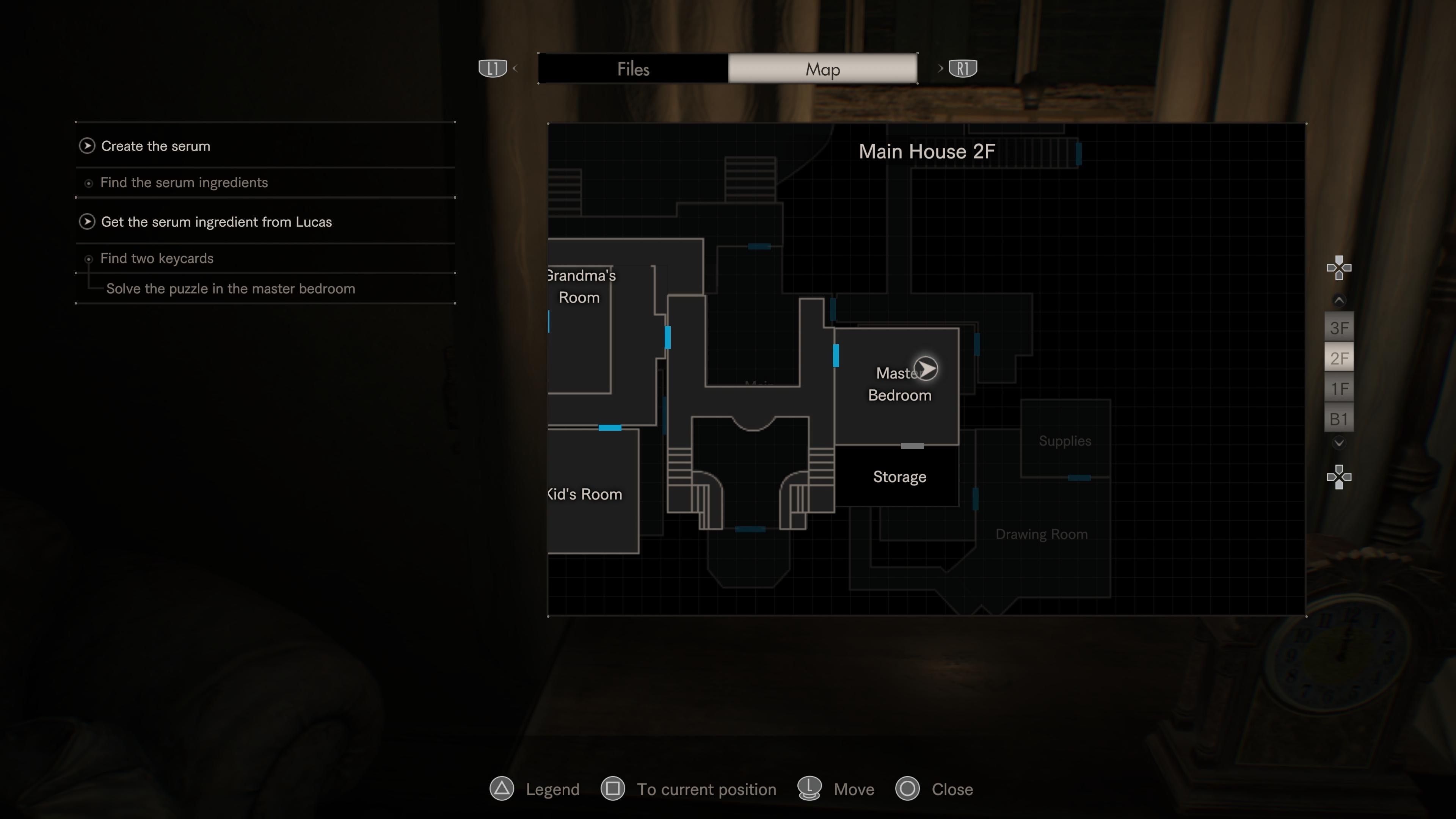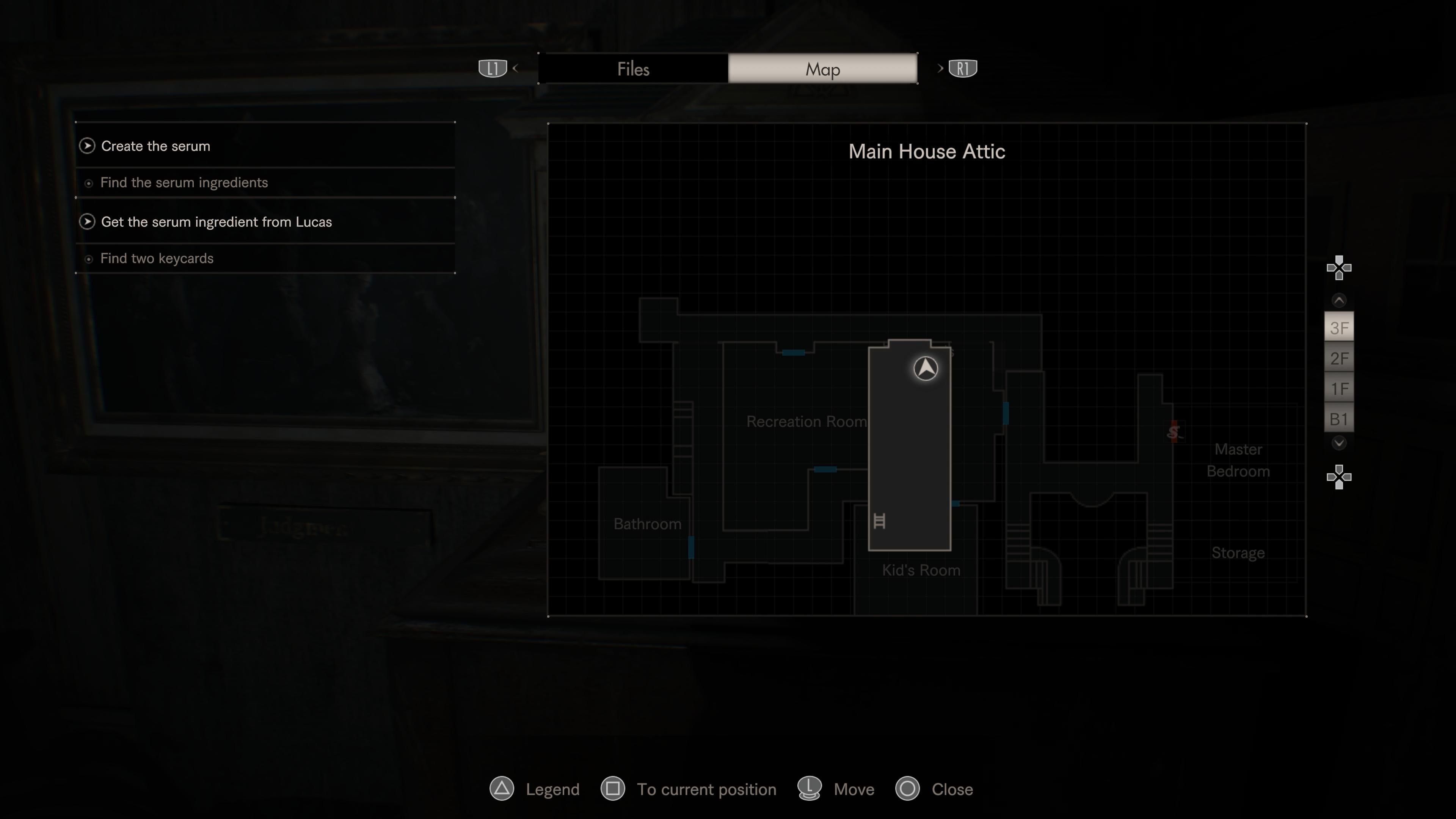 Go back to the second floor of the house and head to the west wing. Use the Snake Key to unlock the Kid’s Room. Inside, you’ll find notes that tell you more about Lucas and give you hints about a hidden switch. This switch is located on the desk, underneath a lamp made from an old trophy. Pressing the switch will lower a ladder to the attic. Before climbing up, don’t forget to pick up the herb in the vase to the right of the ladder.
