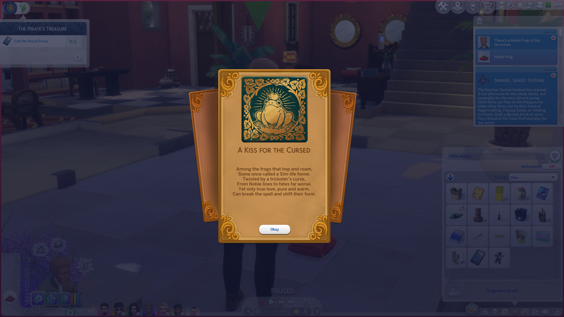Just because you transform the Royal Frog into a Sim doesn’t guarantee a happy romance! The new Sim might not feel a connection with your Sim, or your Sim might already be in a relationship, leaving the frog uninterested. In either case, the frog will leave your Sim’s life and disappear from their inventory. Don’t worry, though – you’ll still be able to find them recorded in your Frog collection notebook.