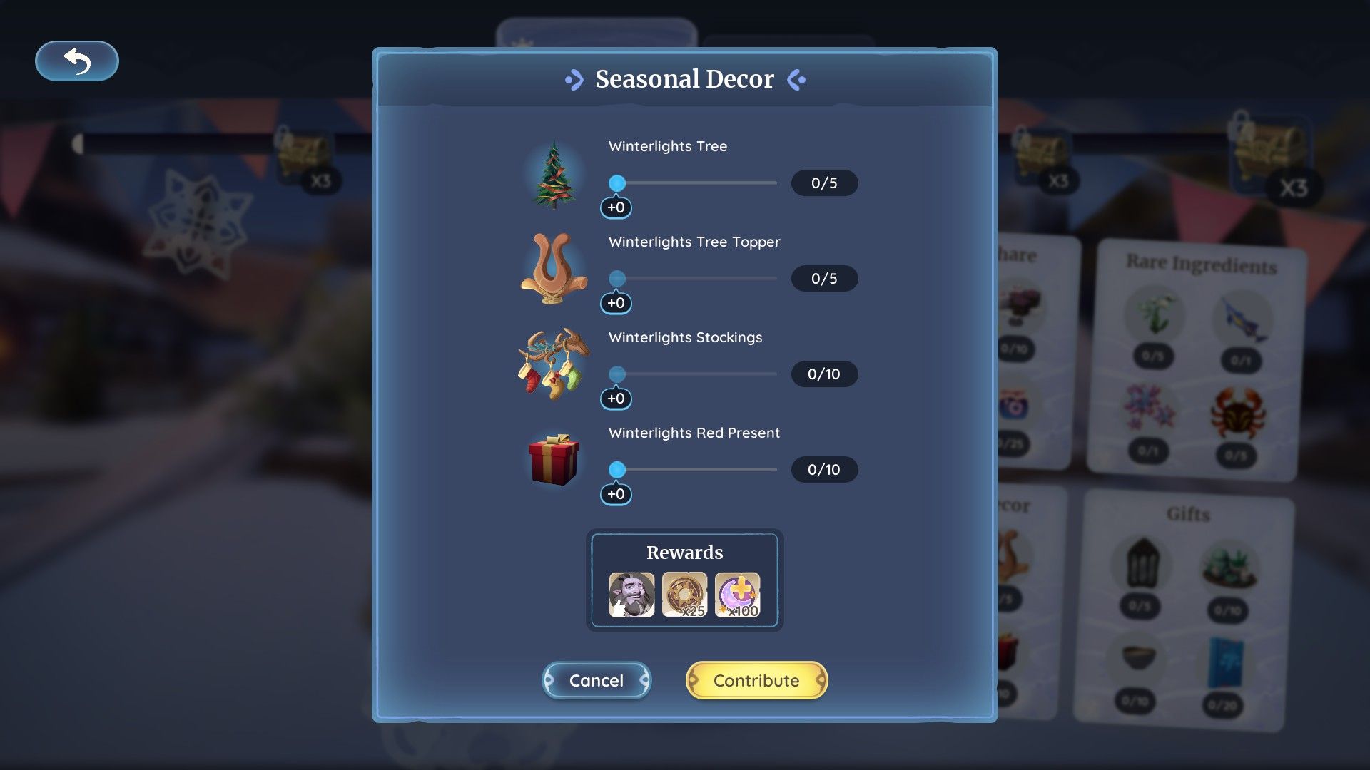 | Winterlights Red Present | 10 | You can purchase these from the Winterlights Store outside of Zeki’s shop for 400 gold each. |