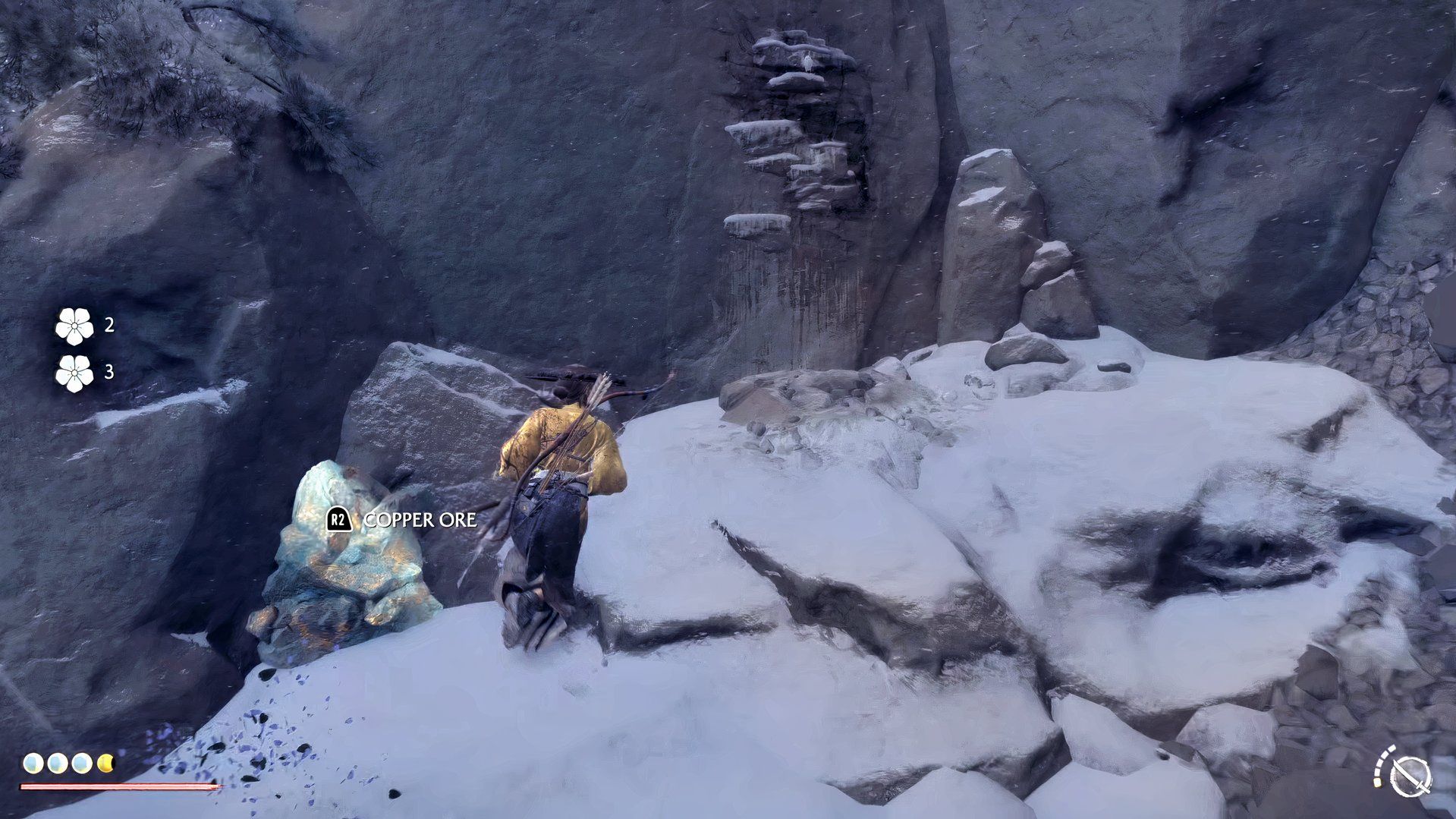 - Metals: Can be obtained by interacting with ore deposits found around the world, looted from defeated enemies, and in Yotei Six Camps. These are fairly common, but seem to spawn on mountains or by rock faces. They can also be purchased from merchants.