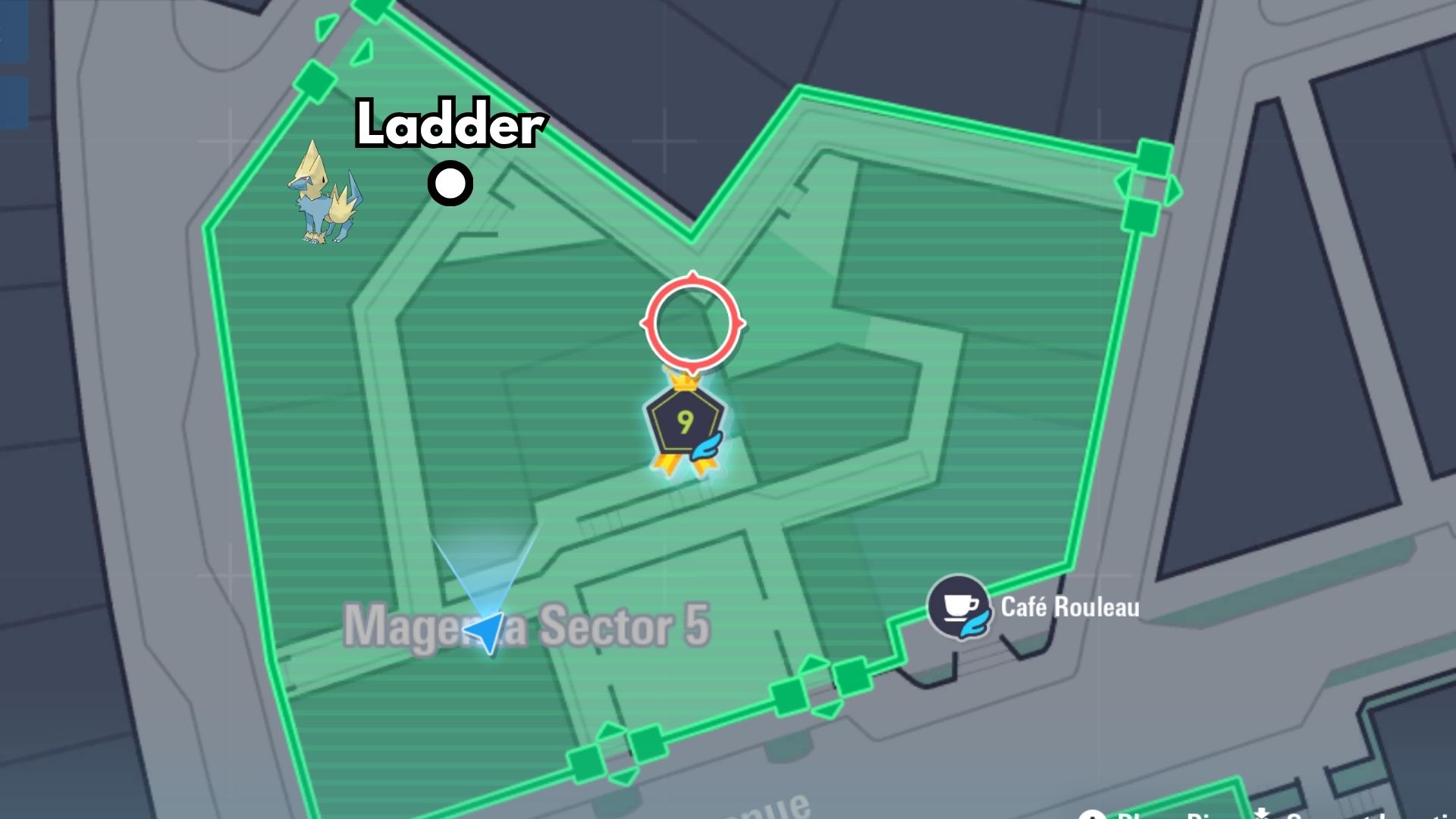 You can find Alpha Manectric on the building furthest to the left in Wild Zone 9. There’s a ladder nearby, right next to the Mawile, that you can use to reach it.