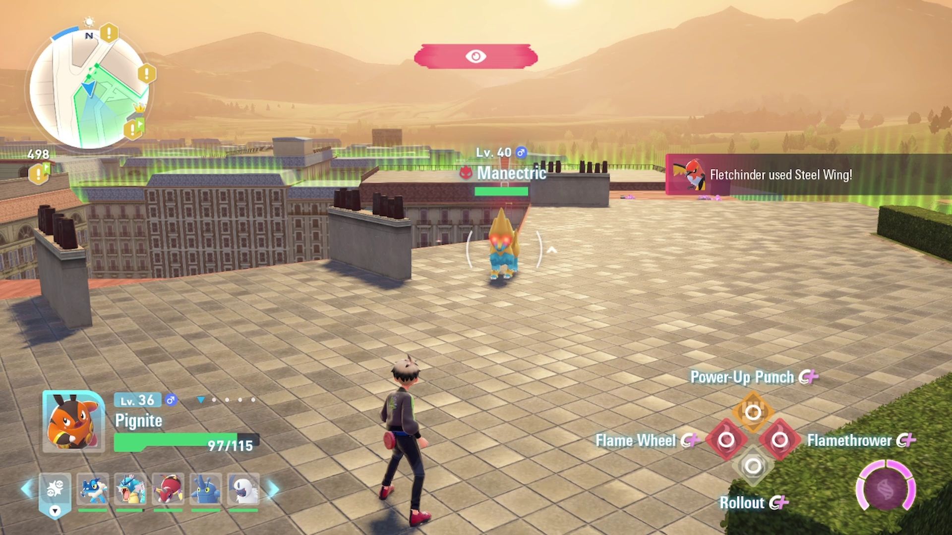 Right in front of the battle arena, there’s a ladder leading to the rooftops. Climb up, and you’ll spot some Fletchinder up there.