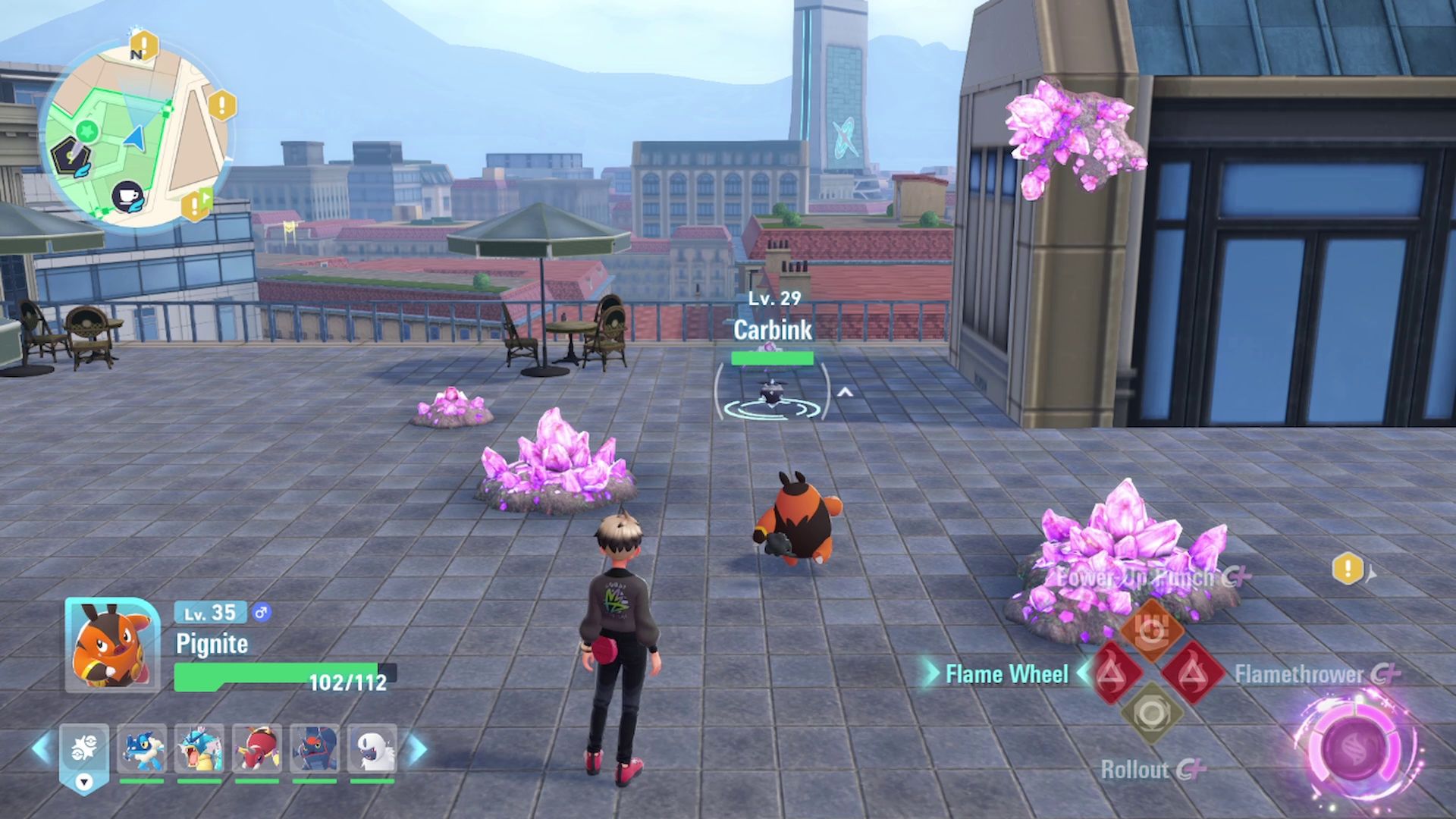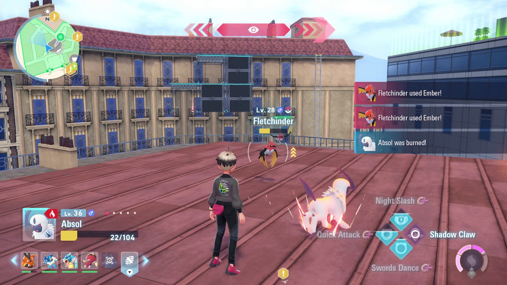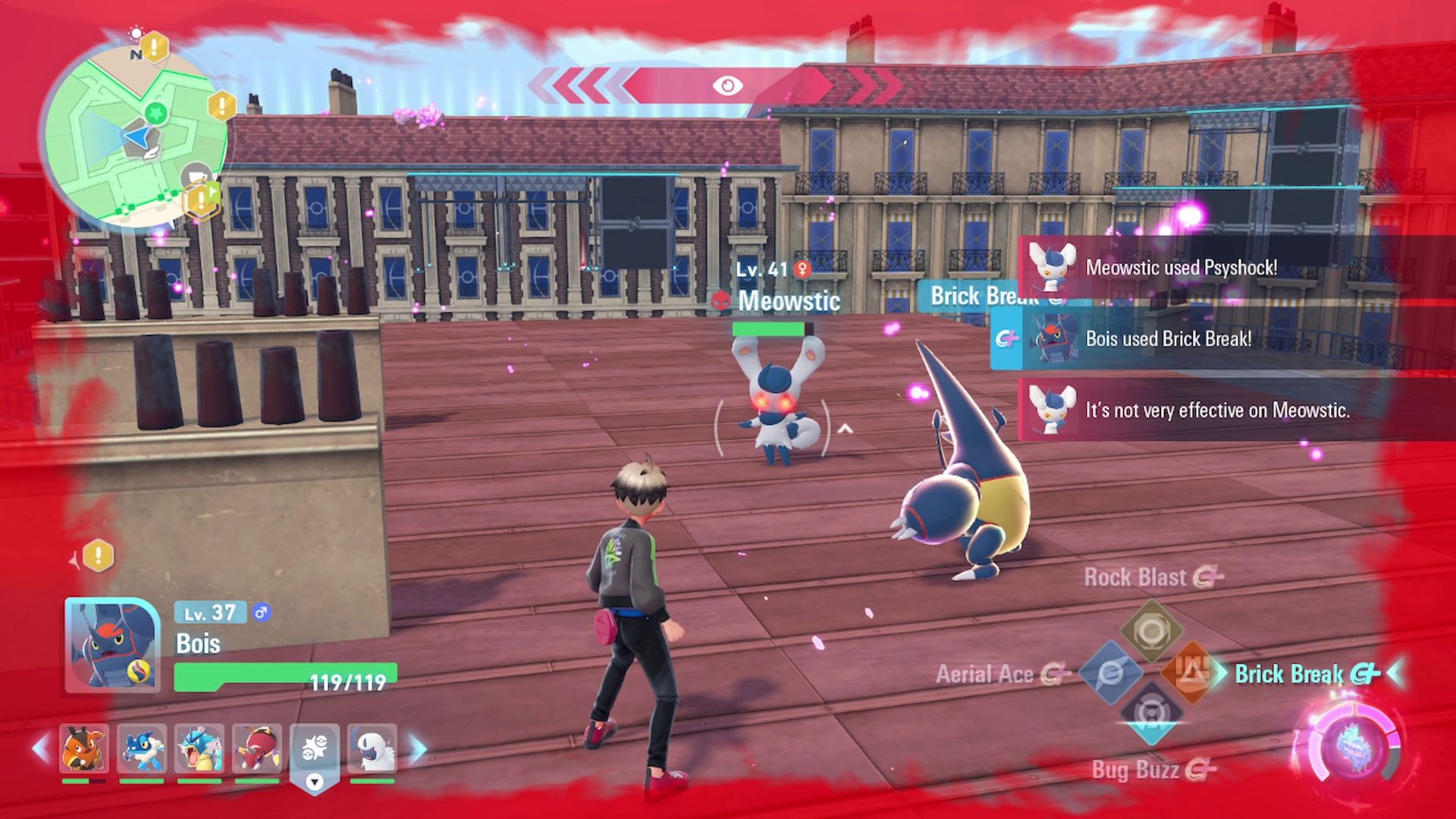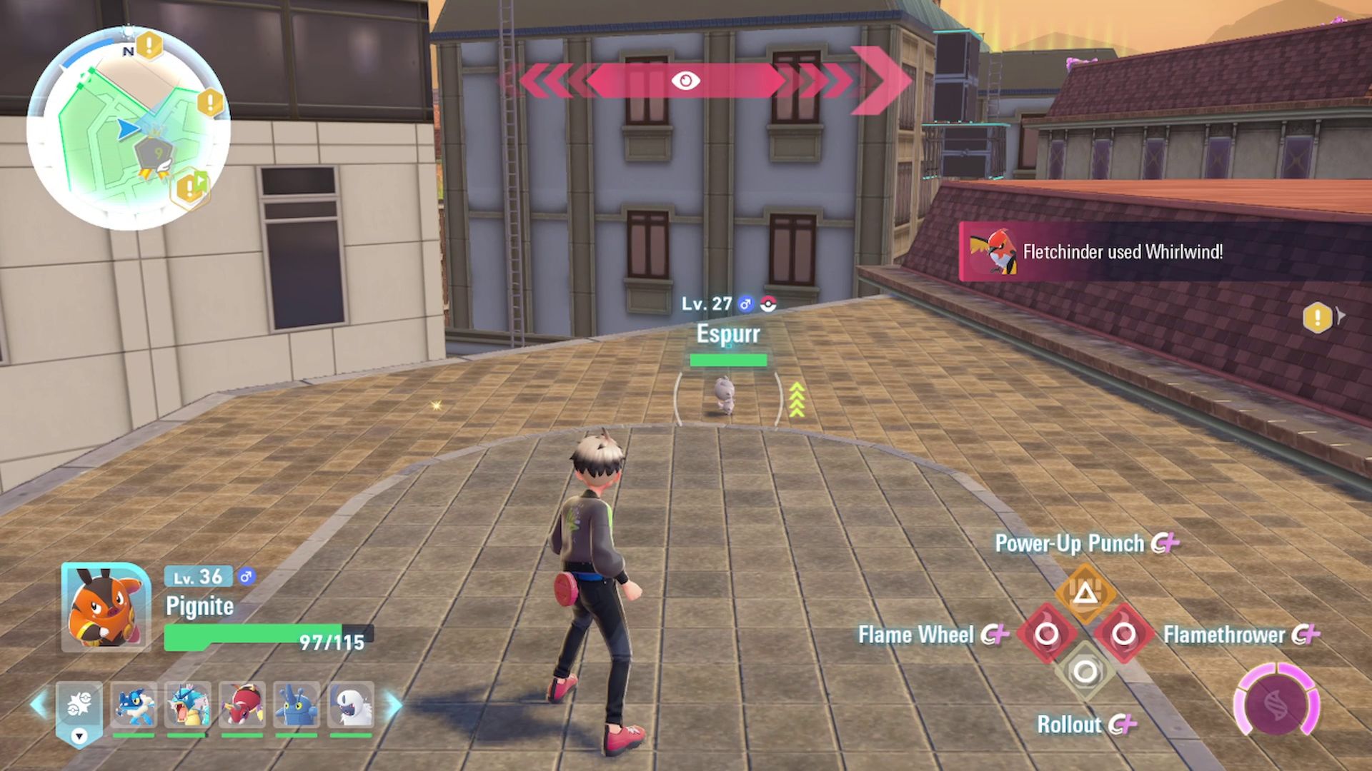 You can find Alpha Meowstic in the central part of the zone, where Fletchinder also appears. It’s located on the rooftop, which you can reach by climbing the ladder near the battle arena.