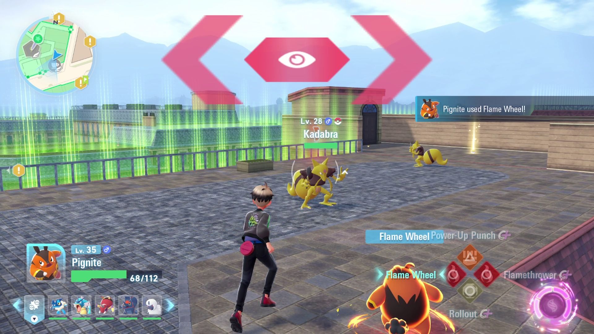 You’ll find one Kadabra in the small garden, hidden behind the two Sableye that guard the path on the right. If you climb the ladder immediately to the right of where you found the first Kadabra, you’ll discover two more Kadabra on the rooftops.