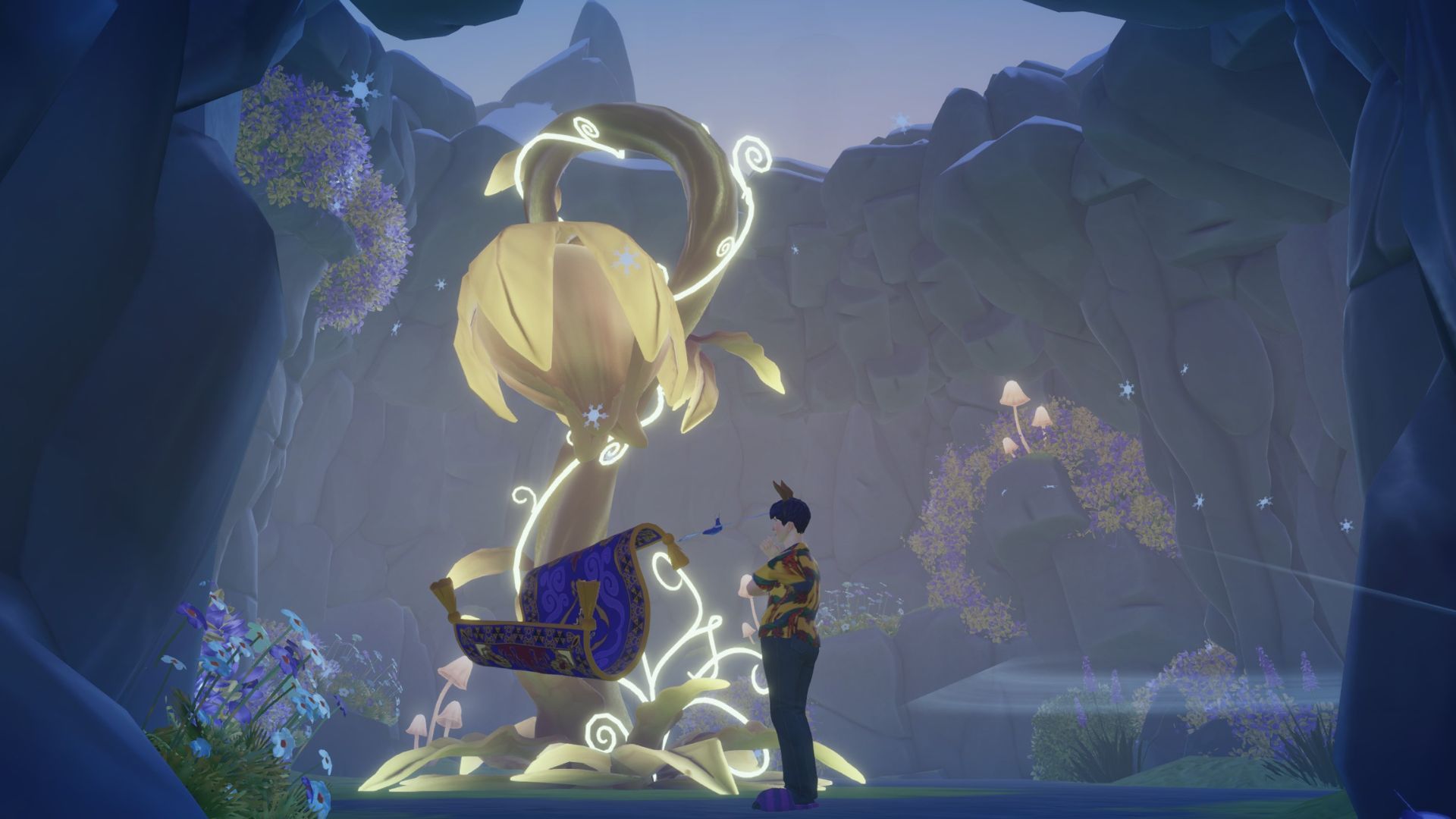 When you enter the cave as a Dreamer, you’ll find a large flower right in front of you. Simply approach and interact with it. It will speak for a moment, and then the Wishblossom Horse will appear. After that, you can personalize your Wishblossom Horse by changing its color, choosing a design, and giving it a name.