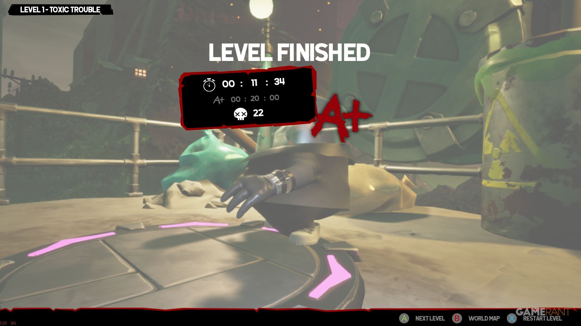 If you mess up during a run and realize you’ll go over the time limit, use these buttons to immediately restart the level.