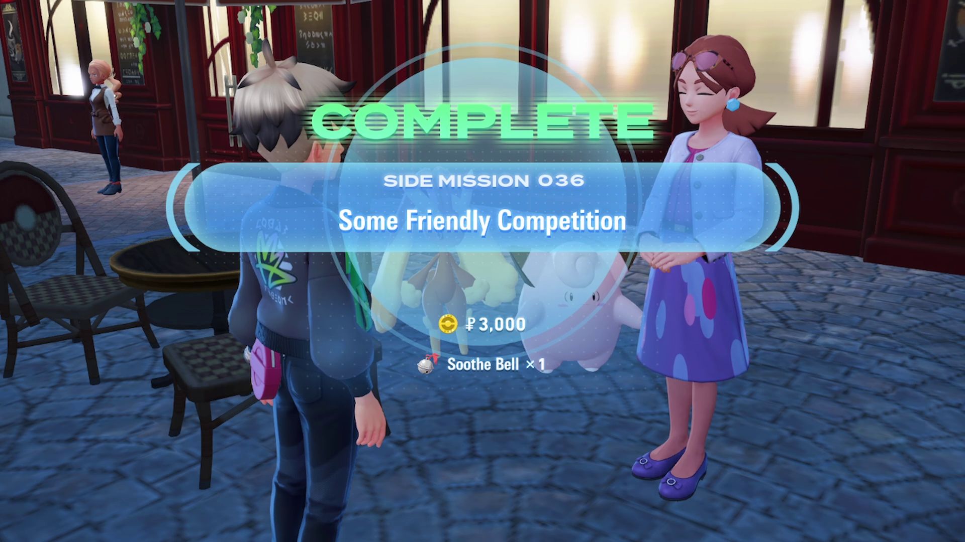 You’ll receive Side Mission 36 from Chou, a trainer located right outside Cafe Rouleau, near the entrance to Wild Zone 9. She’s sitting on the sidewalk seats in front of the cafe.