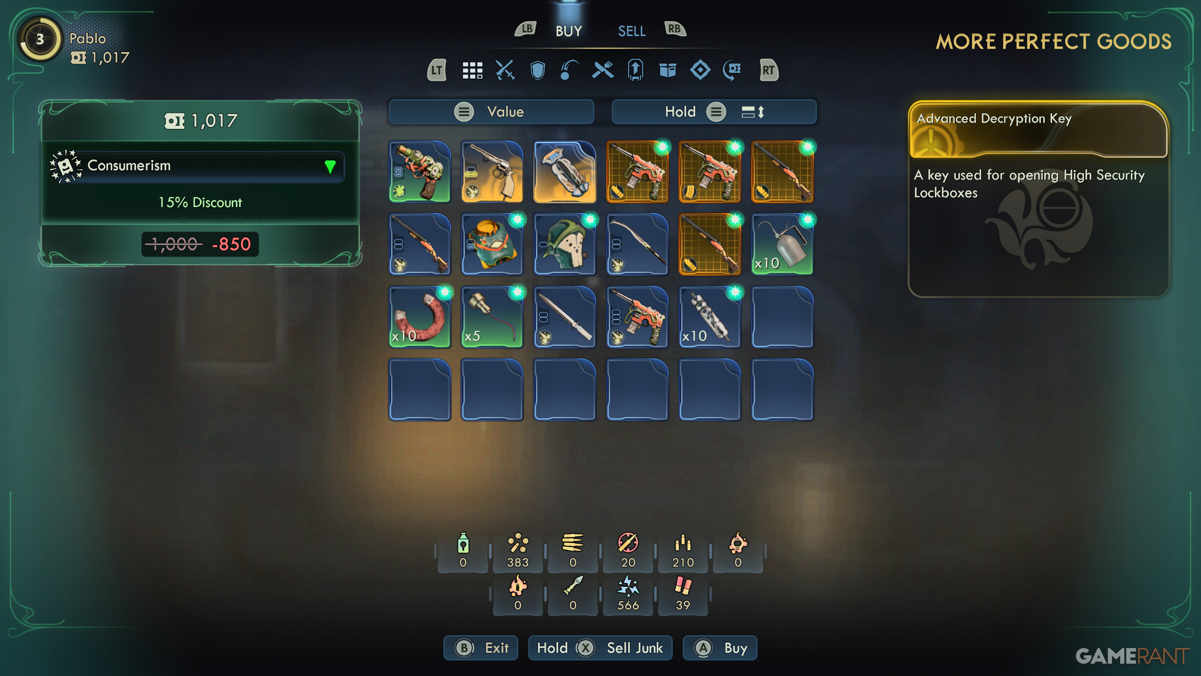 If you have a negative trait such as ‘Consumerism,’ it will lower the cost of Advanced Decryption Keys. For instance, with that trait, the price will be reduced by 15%, bringing it down to 850 Credits.