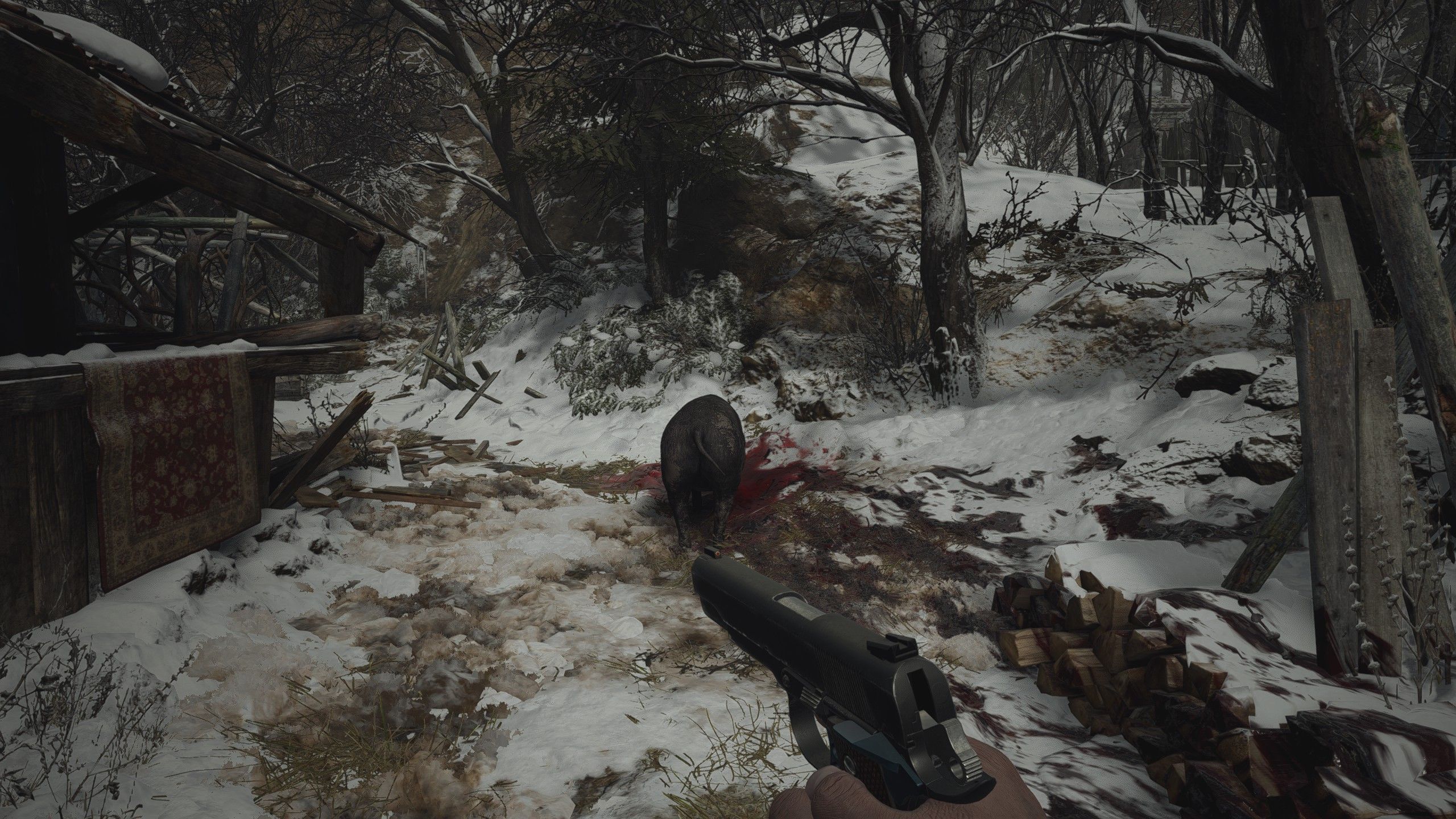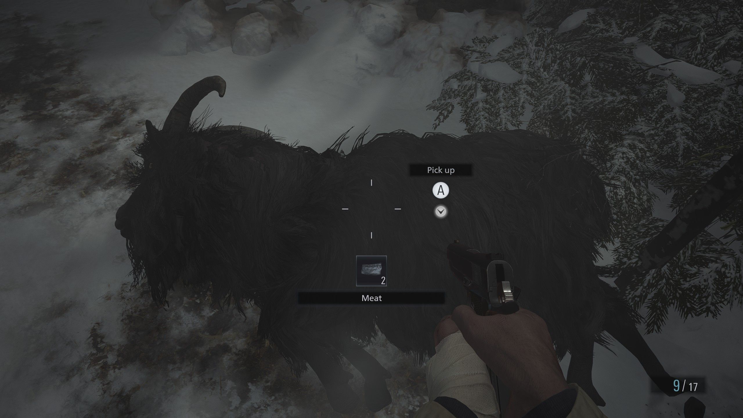 Once you’ve finished exploring Castle Dimitrescu, you can go back to the Village. Head south through West Old Town, and at the very first house you visited, you’ll find a pig – either wandering around inside or outside – that you can collect 2 pieces of Meat from.