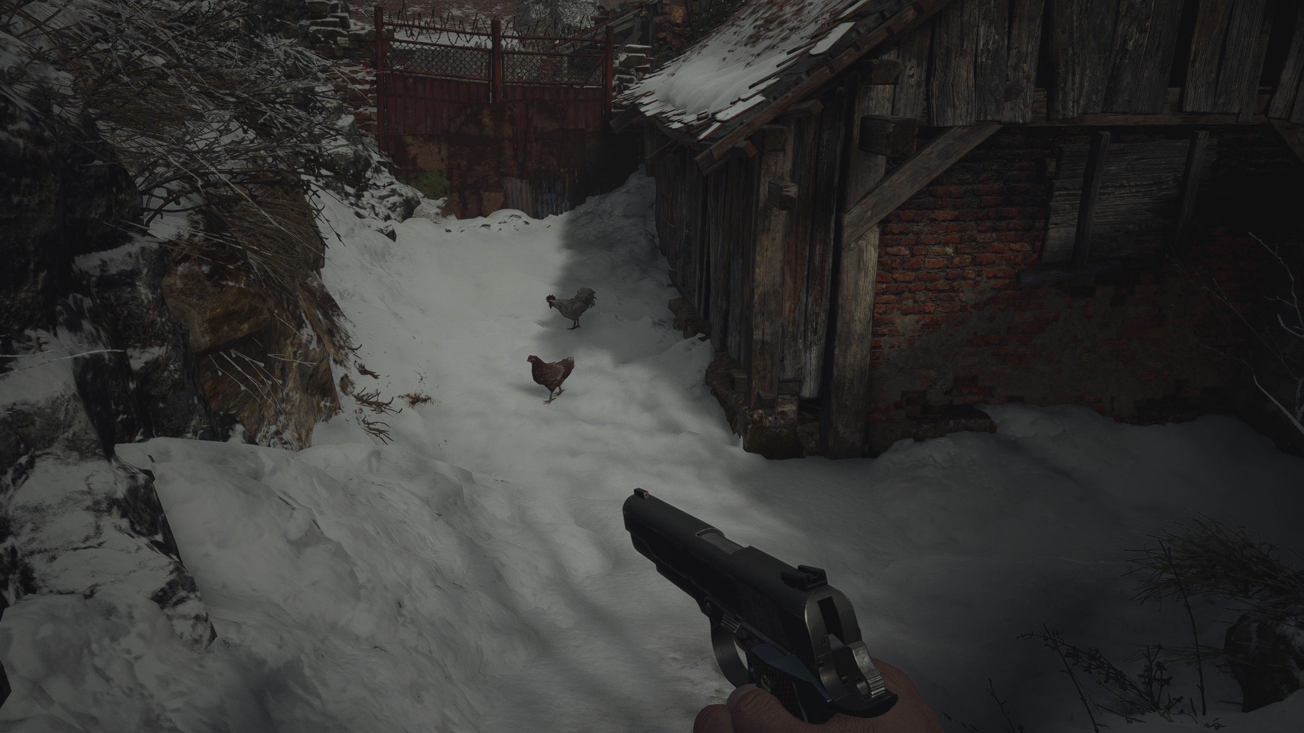 After leaving Castle Dimitrescu, your next goal is to find the house with the red chimney in the Village. You’ll now be able to access the Graveyard and use the Iron Insignia Key to open a gate leading to West Old Town. From there, you can climb onto the rooftops and drop down into a larger area. At the back of a house in this area, you’ll find two chickens you can kill to get two Poultry items.