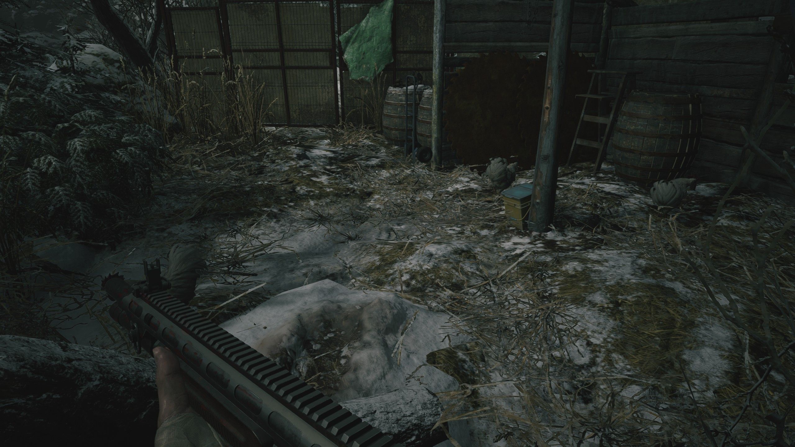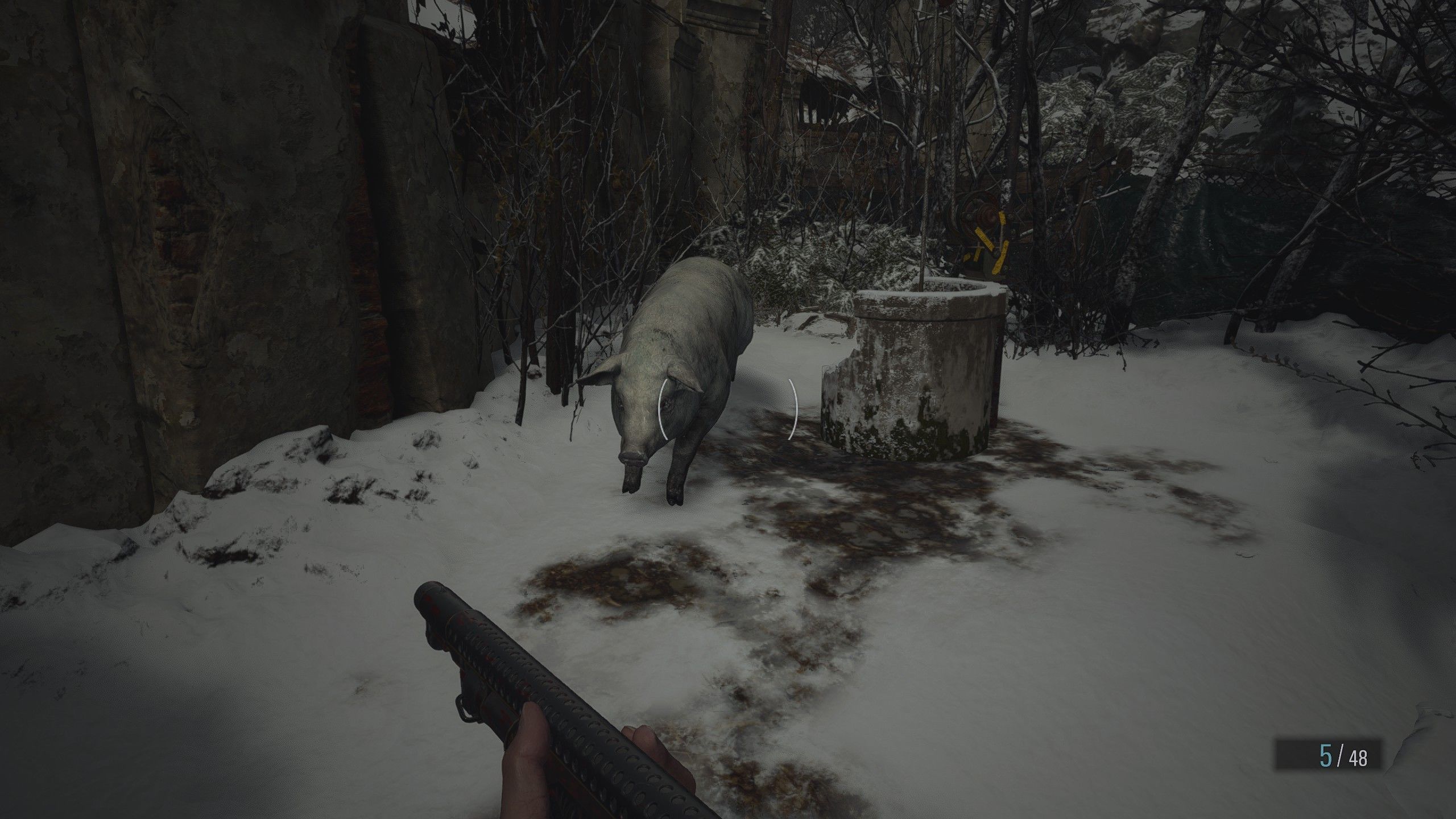 Once you’ve been to Castle Dimitrescu, you can head east into the Village to find Fallow Plot. Look for a building across from Luiza’s House – the one where you initially encountered Elena. Climb in through a window, and near the well, you’ll find a white pig you can kill to obtain Quality Meat.