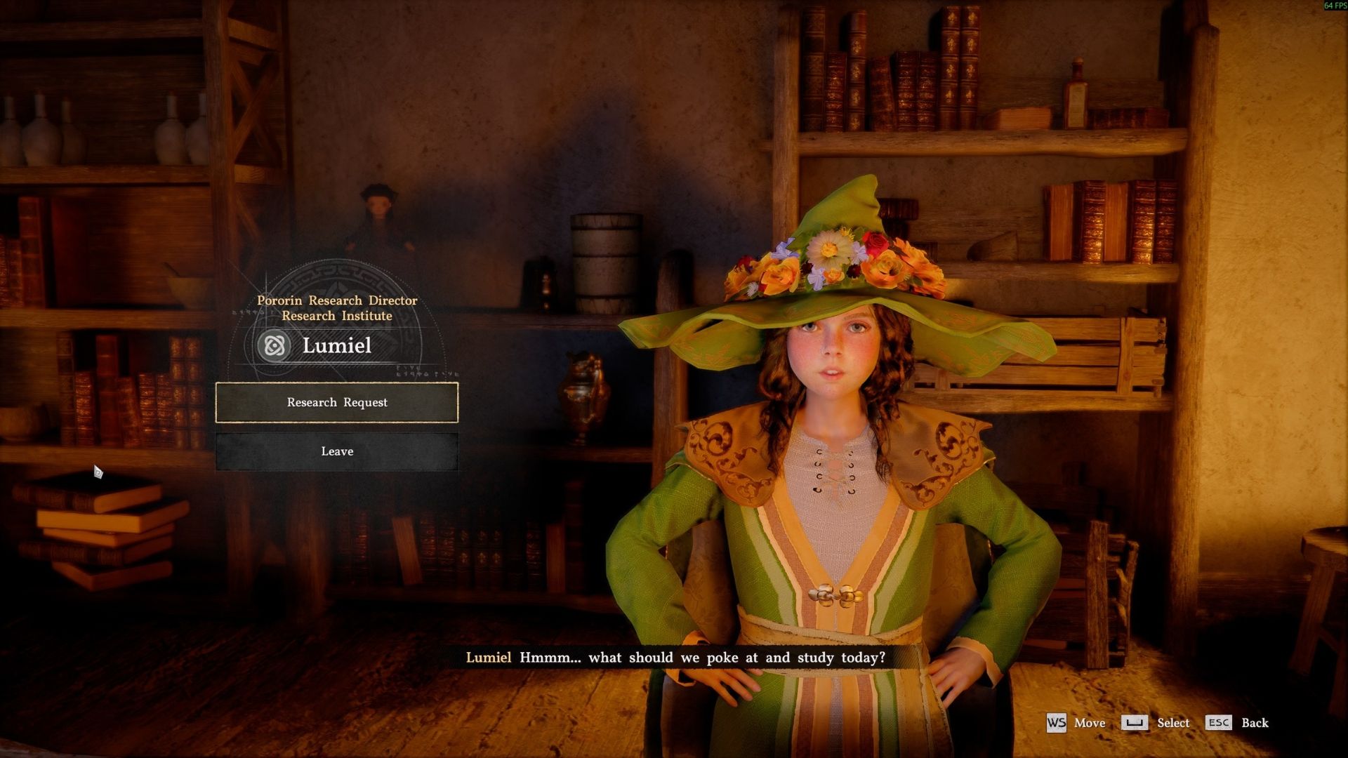 Speak with Lumiel and choose “Research Request.” Then, select the “Natural Harmony Research” option – it’s the first one on the left. This research takes 2 in-game hours and costs 1.10 Silver to complete. Confirm your choice, and the research will begin.