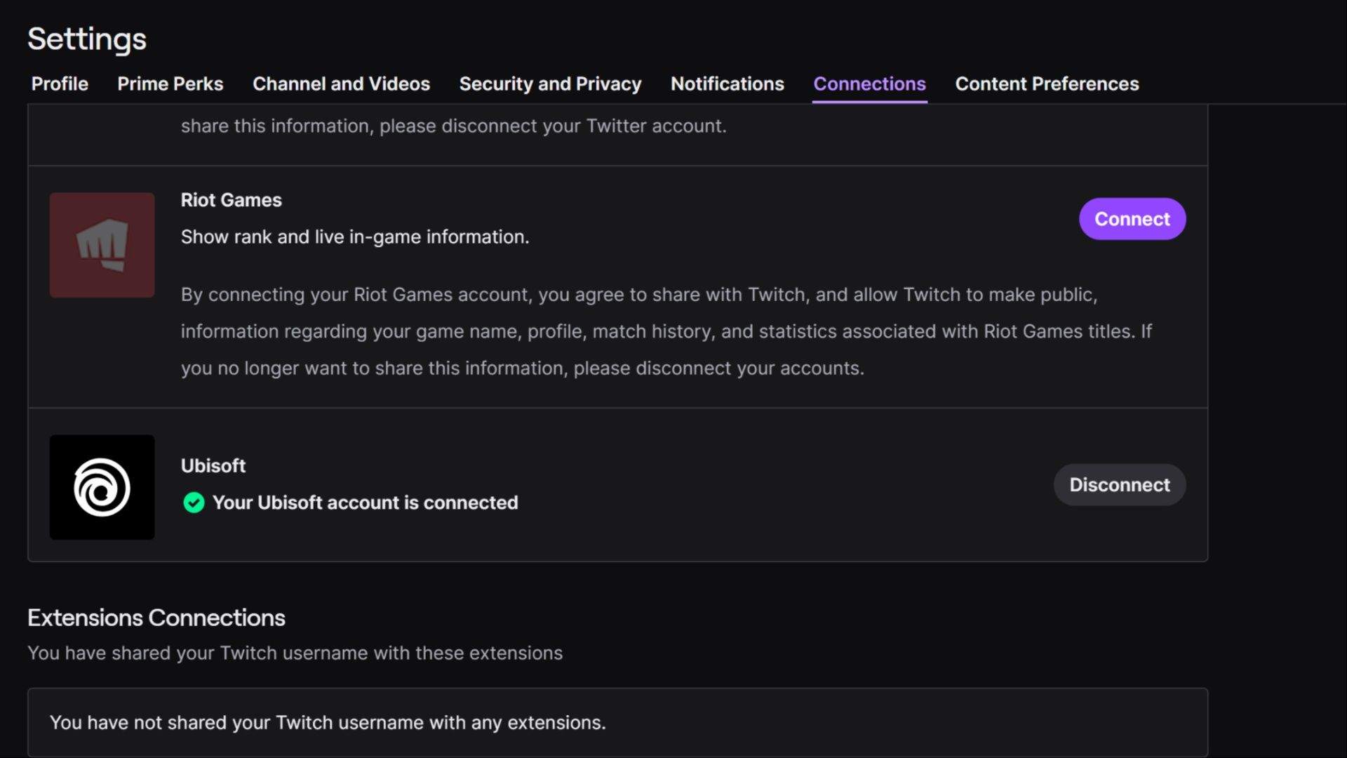 Before you start watching streams, make sure your Twitch and Ubisoft Connect accounts are linked. You can do this by clicking your account icon in the top right corner of the screen, going to Settings, and then selecting the Connections tab. Scroll down to the Ubisoft section to connect your accounts and enable Twitch Drops.