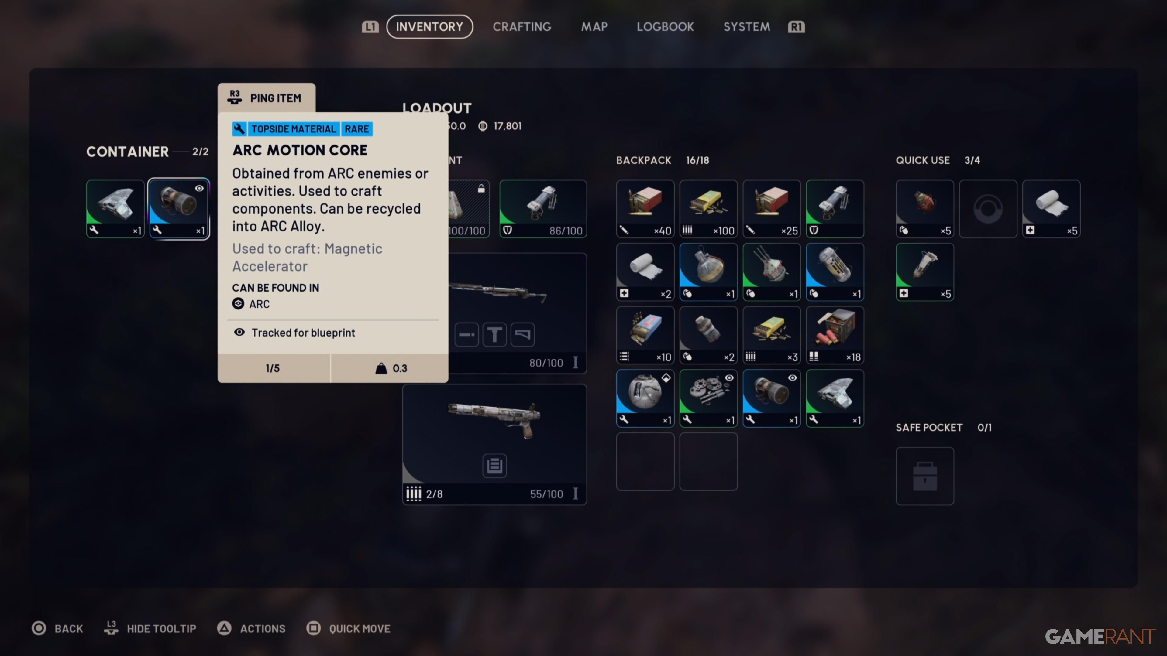 In Arc Raiders, finding resources through exploration and scavenging is crucial. Everything players collect can be used to craft items or improve things like workbenches and weapons. Players will need to find an ARC Motion Core relatively early in the game.