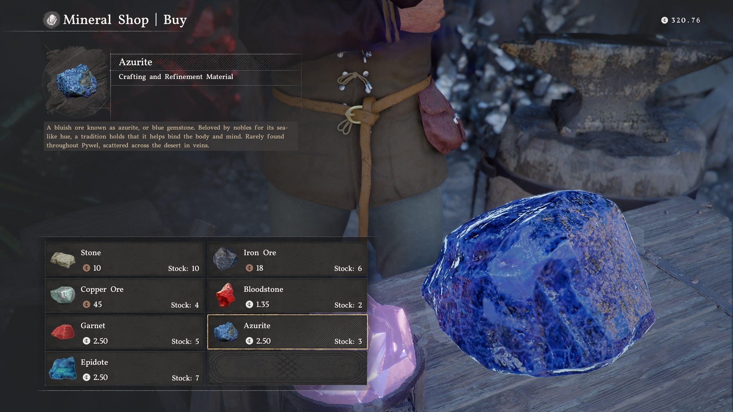As a Crimson Desert player, I’ve found that one of the simplest ways to snag some Azurite is by hitting up the Mineral Shops. When you’re starting out, you can unlock these shops by either freeing Cairn House or taking over the Karin Quarry. I’ve been able to buy up to three Azurite minerals at a time from them, but be warned – each one costs 2.50 silver, so it’s a bit of an investment!