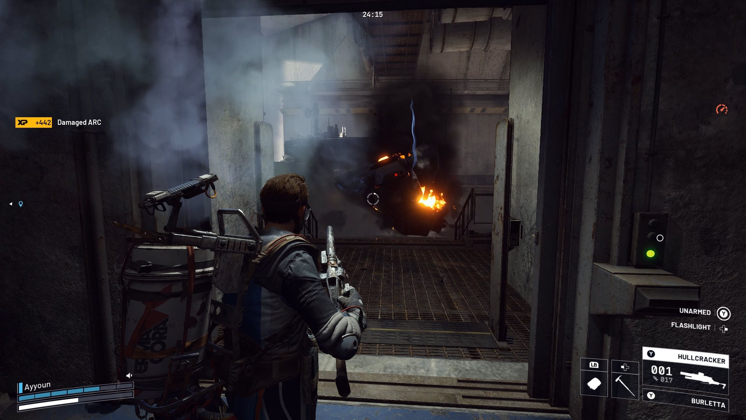 First, find solid cover – ideally a hallway leading outside where the Bastion moves. This will help you avoid its gunfire. Even if you do get hit, you’ll be able to quickly hide and recover, making the battle much easier.